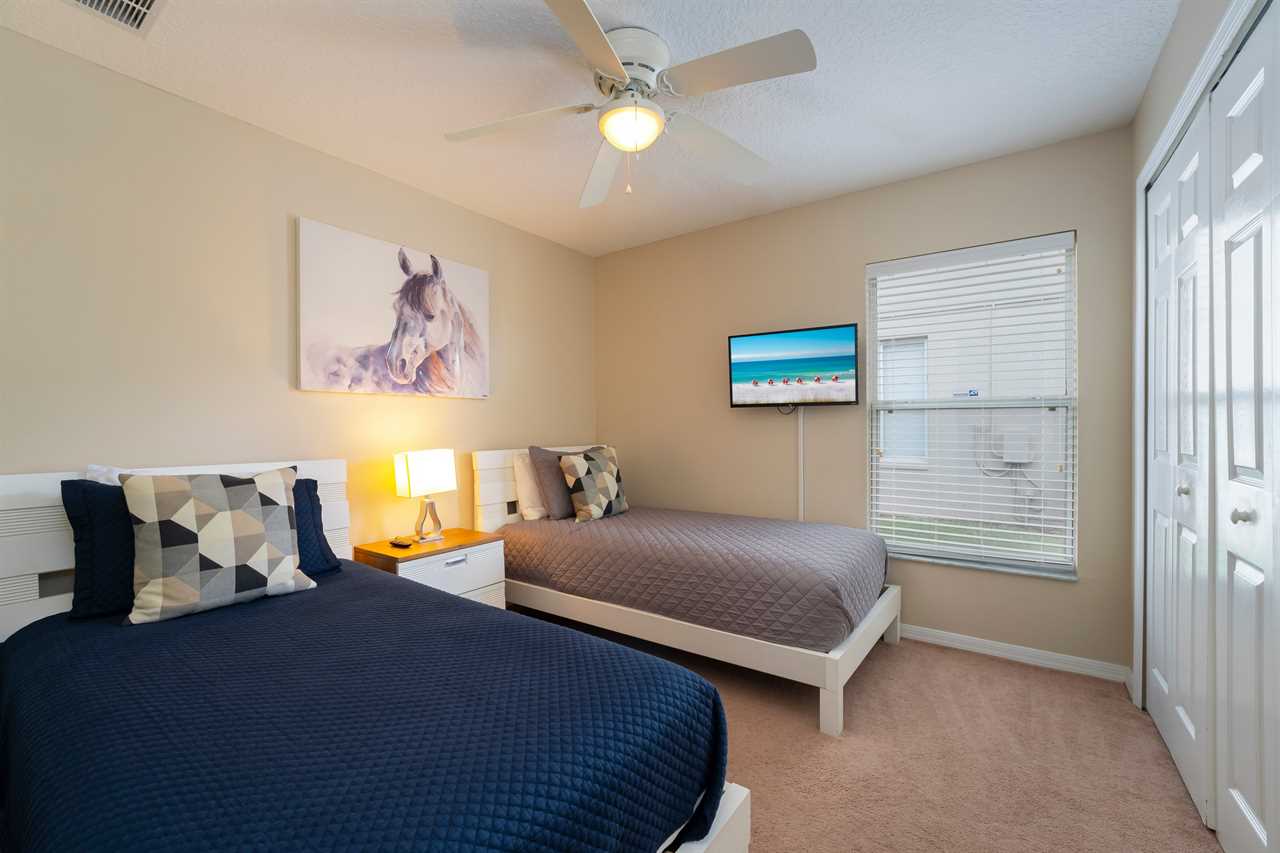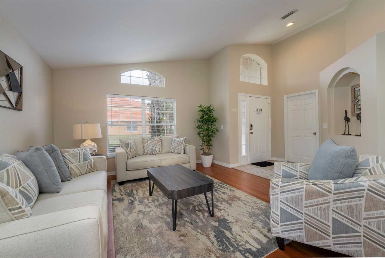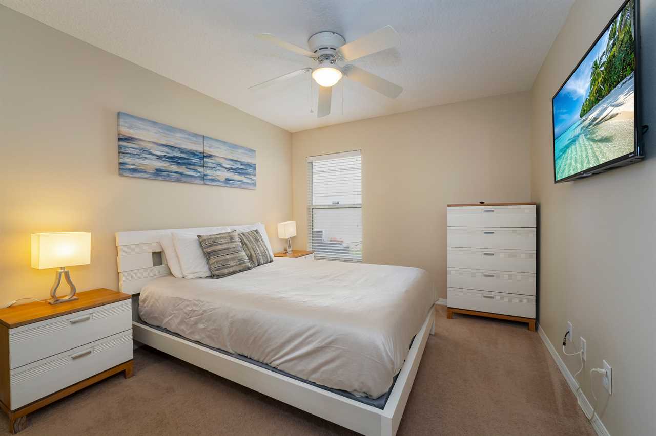 This stylish corner-lot villa offers four bedrooms, including two master suites, providing a spacious and comfortable retreat. The home features two seating areas and two dining areas, ensuring plenty of room for relaxation and entertainment. The lounge includes a pull-out sofa bed, offering additional sleeping options. The fully equipped kitchen is designed for convenience, complete with a breakfast table and bar seating. Bedrooms three and four share a family bathroom, making it an ideal setup for families and groups.