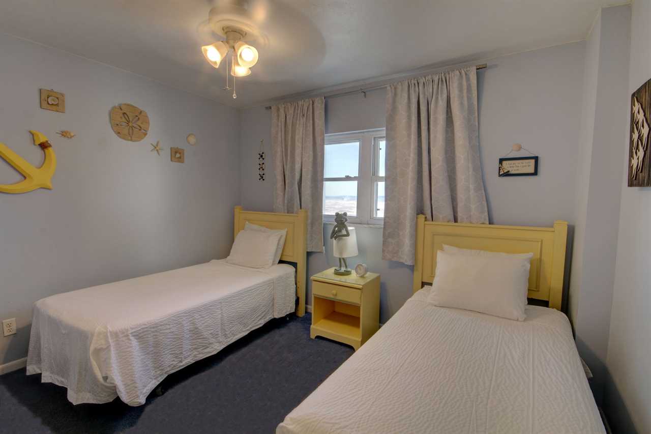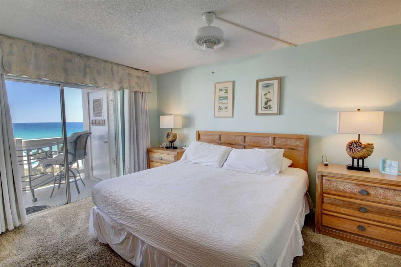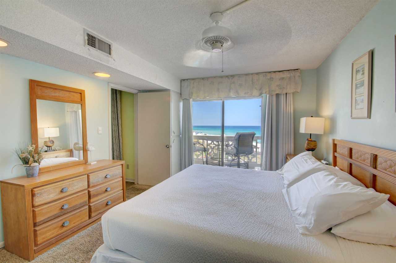 This two bedroom, two bathroom unit carries the blues from the ocean into your living space and invites you to relax among wave songs. The kitchen is fully furnished with everything you need to enjoy a great meal while you watch the waves crash onto the beach from your balcony. With three TV's in the unit, everyone can watch what they want and there is plenty of space for sleeping six. The fun decorations within the unit enhances your vacation experience.