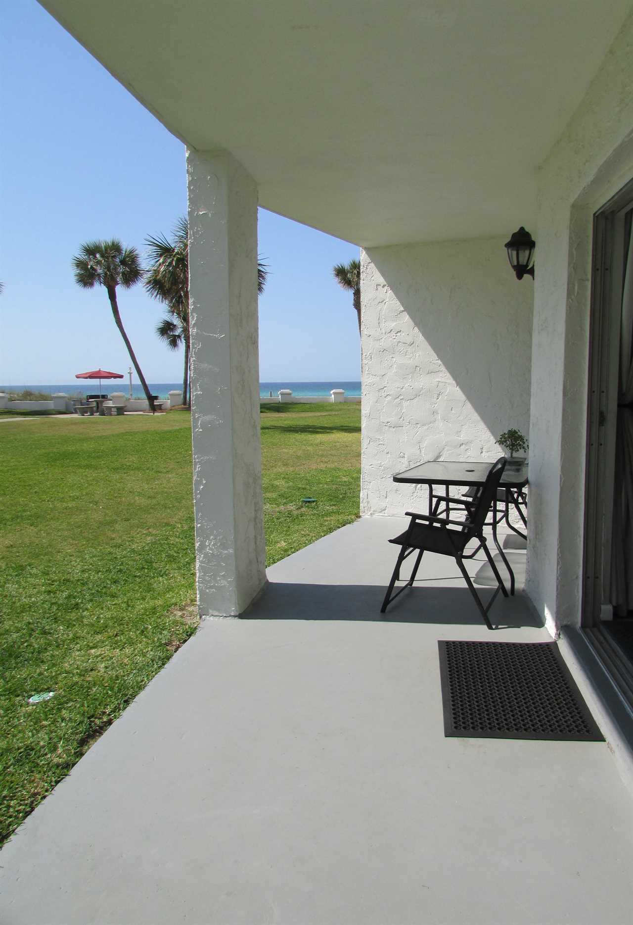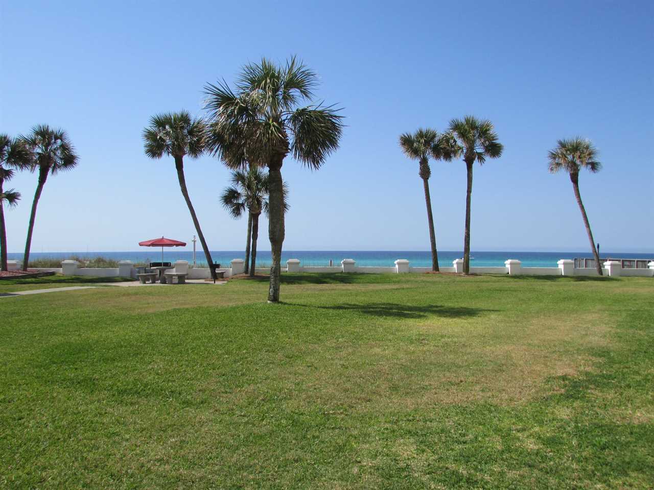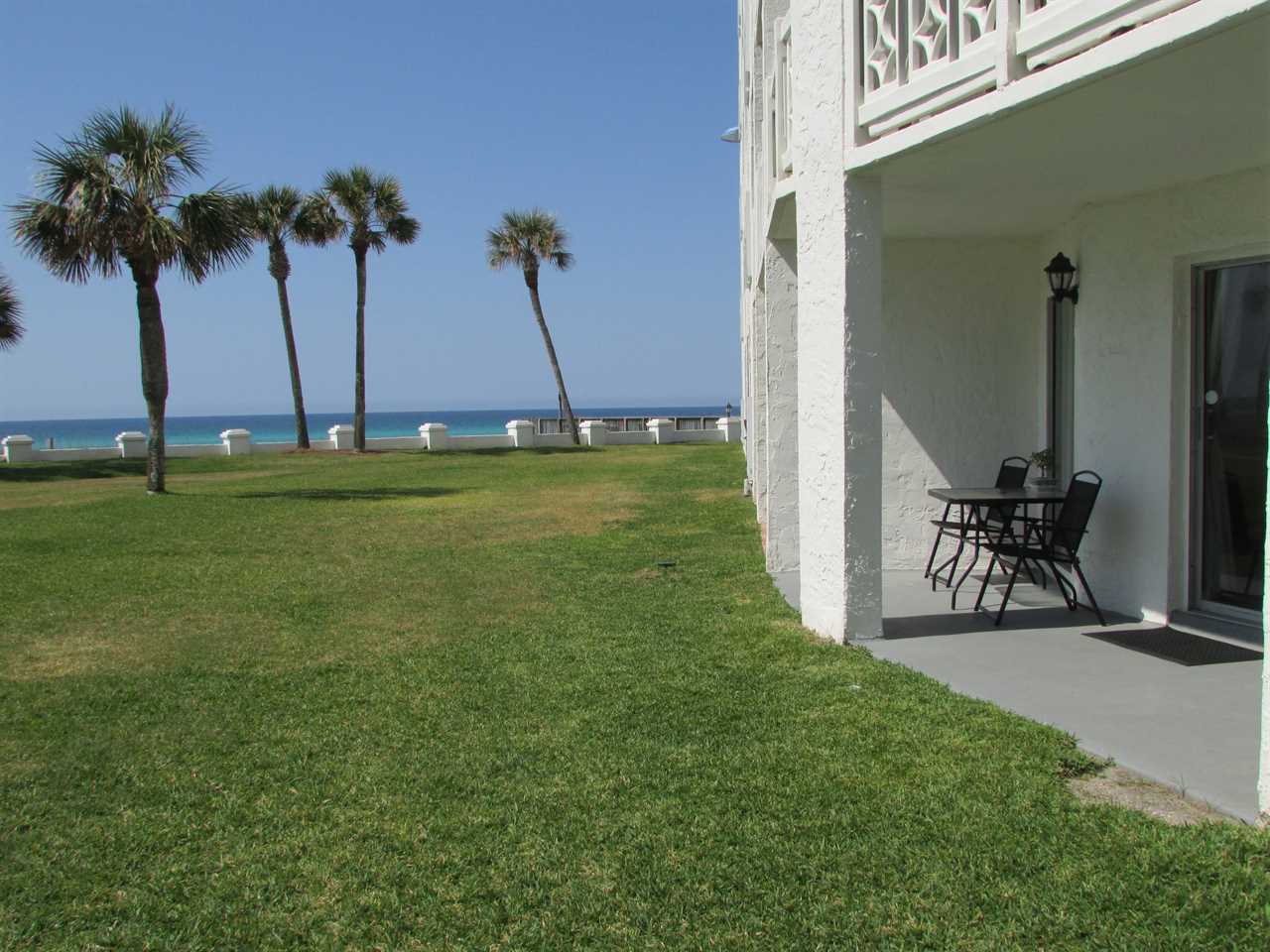 Location and convenience - one of the few condos where the ground-floor patio opens to the grass courtyard and is just steps to the beach walkover and the white sand of the Gulf of Mexico! Across the yard is the huge pool with lounge chairs, plus the BBQ areas with tables overlooking the Gulf are close by.