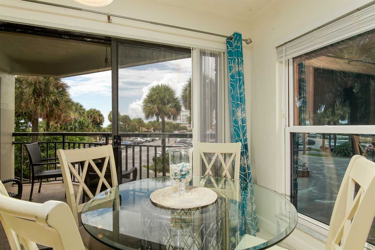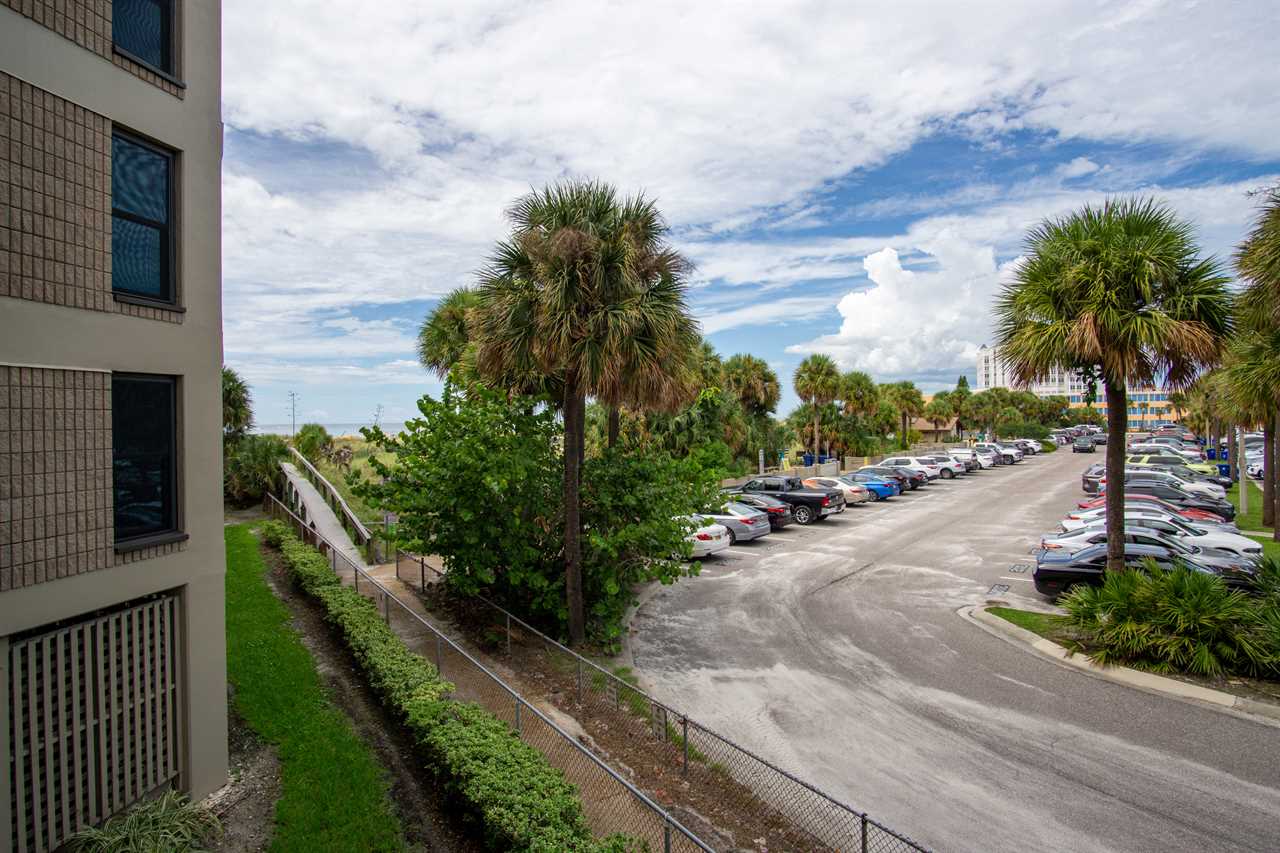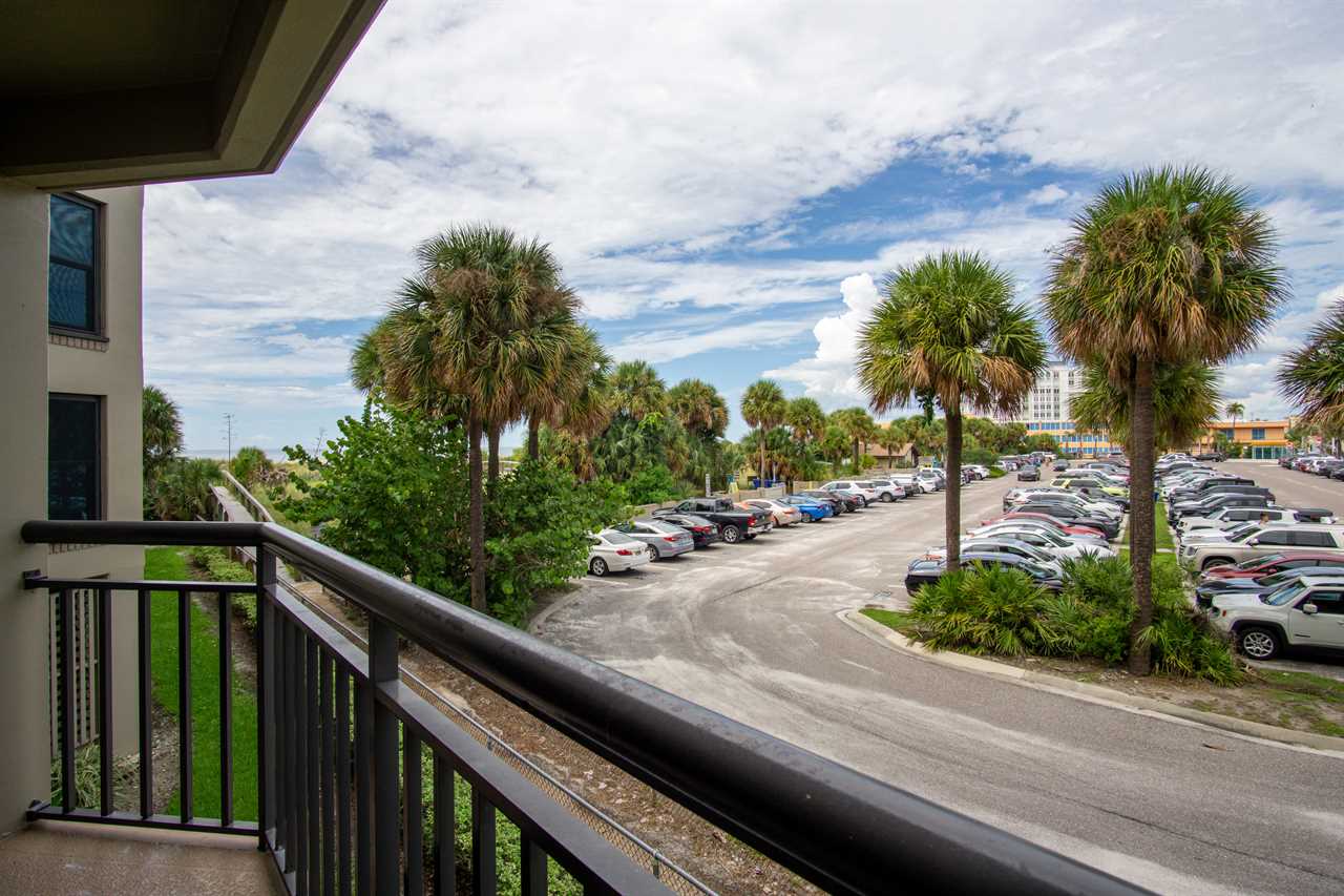 Enjoy a breezy perch with partial Gulf views and tropical ambiance in this one-bedroom condo at the beloved Gulf Strand Resort. With a northwest-facing balcony tucked along the side of the building, you'll catch glimpses of sunsets and swaying palms while savoring all the amenities this walkable beach resort offers.