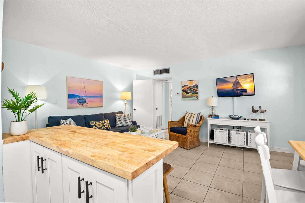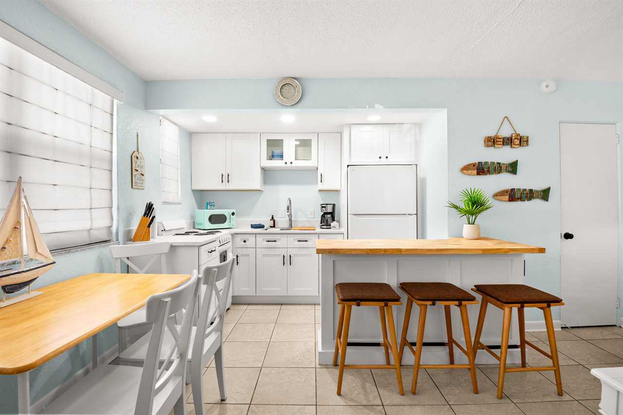 Inside, you'll find hard surface flooring throughout and a beautifully remodeled, fully stocked kitchen with everything you need for a stress-free stay.