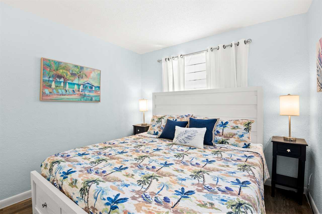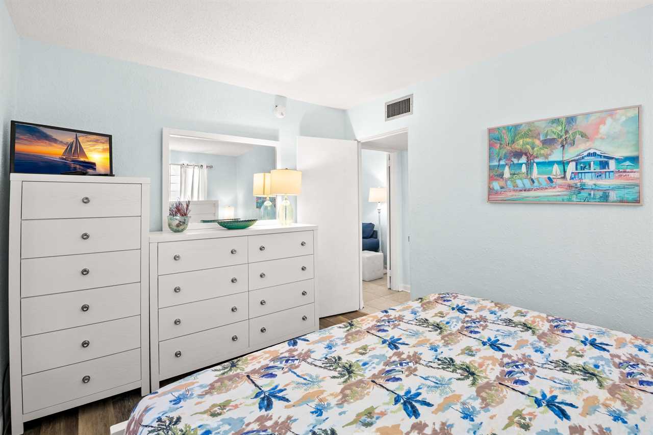 Gulf Winds #1703 – Relax and unwind in this ground-floor one-bedroom condo with no stairs and an easy walk to the beach! Perfect for couples or small families, this comfortable getaway features a king bed in the master bedroom and a sleeper sofa in the living room.