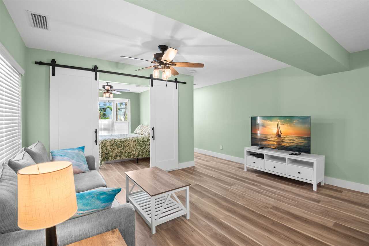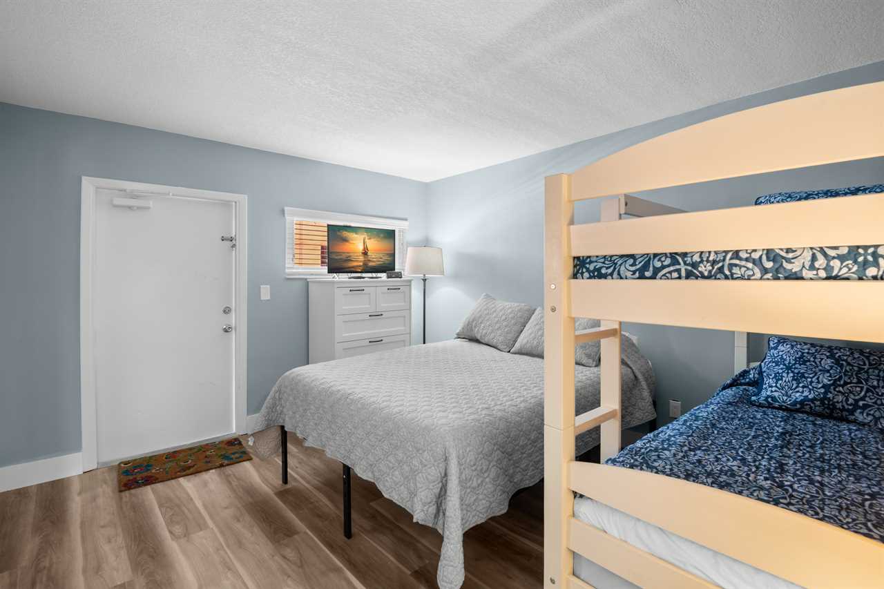 - Second Bedroom: Queen bed plus a twin bed and flat-screen TV