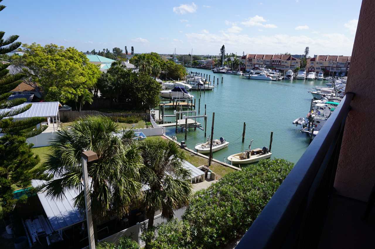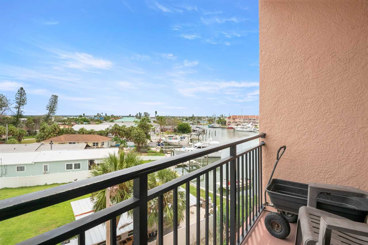 Welcome to Madeira Bay Resort #412, a two-bedroom, one-bathroom condo offering beautiful views of the marina, sunrises, waterway, and nearby islands from your private balcony. With tile and wood flooring throughout and a welcoming pet policy, this unit is perfect for families, couples, or guests traveling with a well-behaved dog.