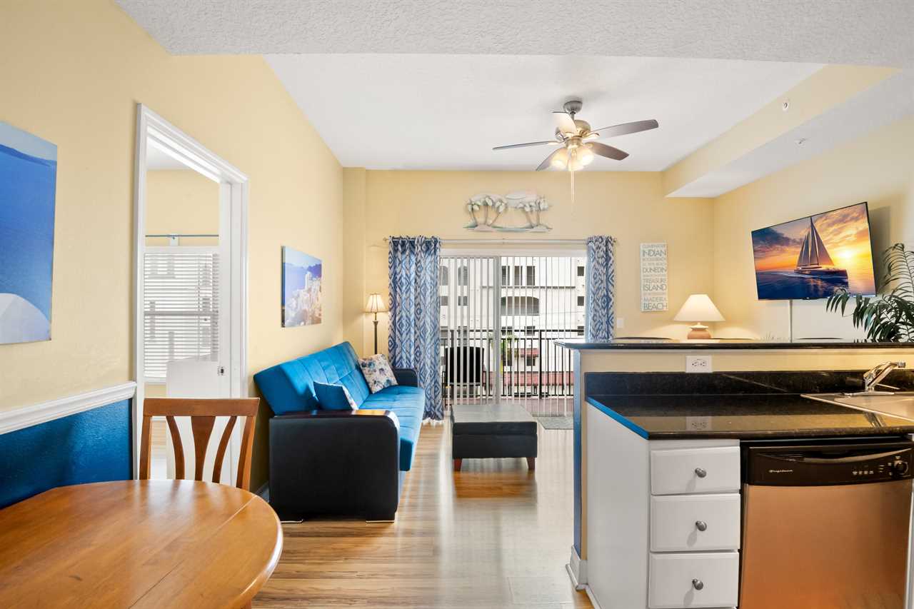 Welcome to Madeira Bay Resort #404, a two-bedroom, two-bathroom condo with coastal décor and a private balcony overlooking the Gulf. Just steps from the beach and a short walk to John's Pass Village & Boardwalk, this updated unit is perfect for families, couples, or guests traveling with a well-behaved pet.
