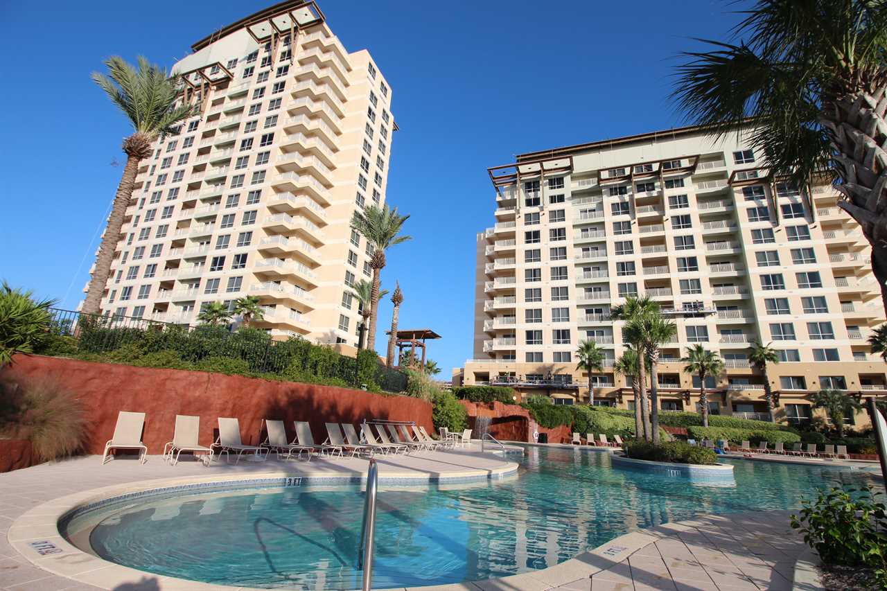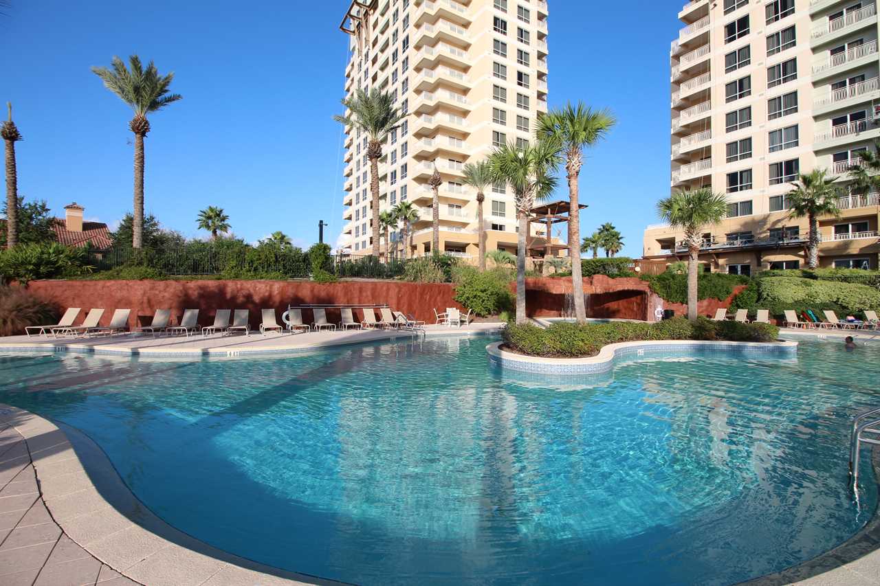 • Lagoon-style pool with waterfall, hot tub, and kiddie pool