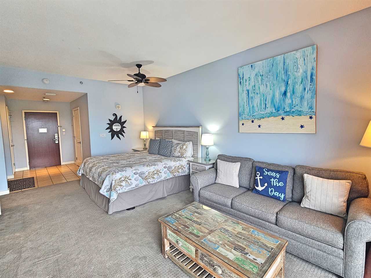 • Sleeping: King bed + sleeper sofa (sleeps 4, max 3 adults)