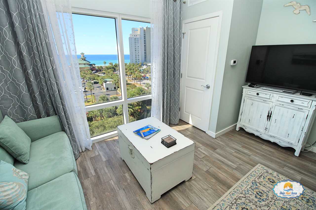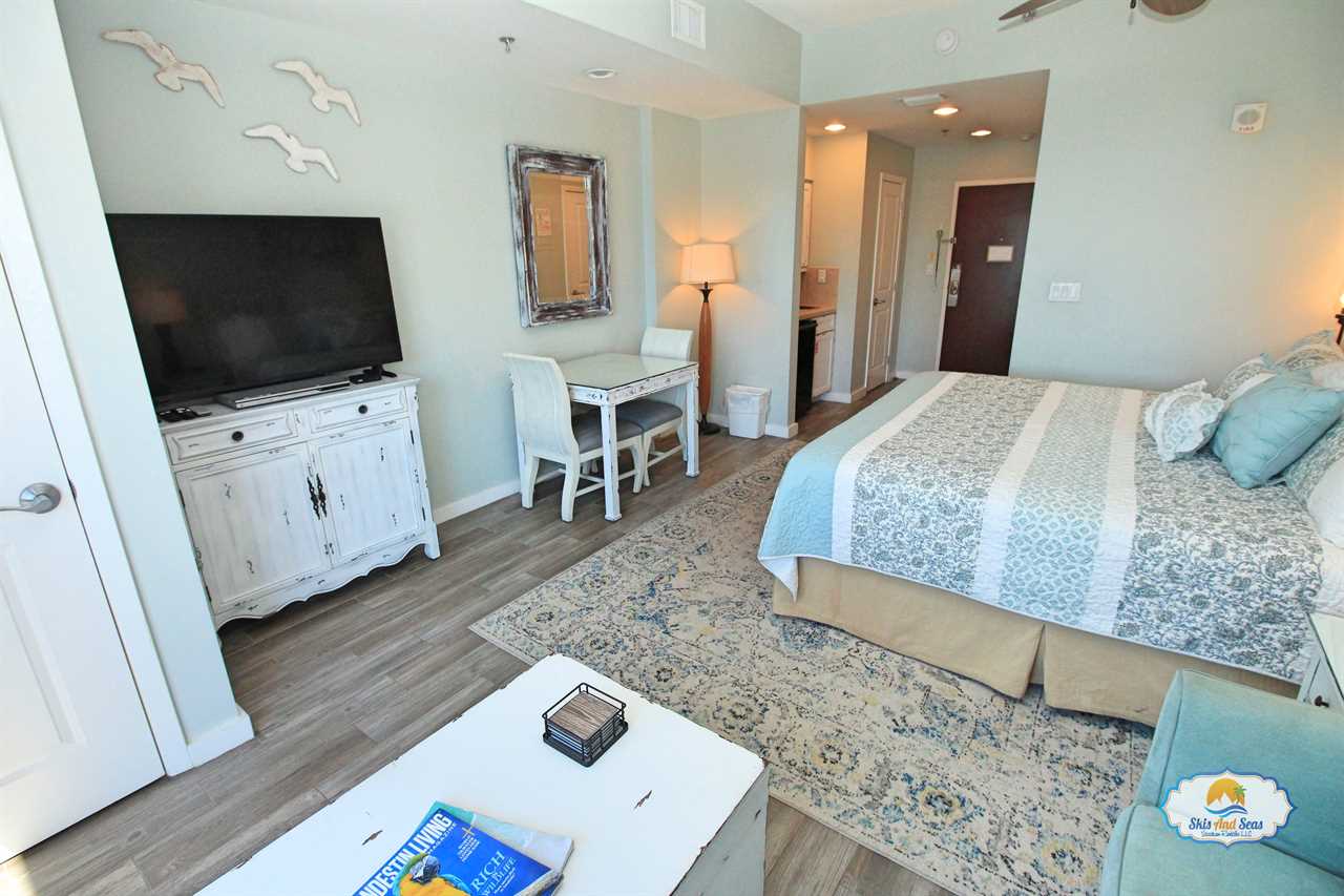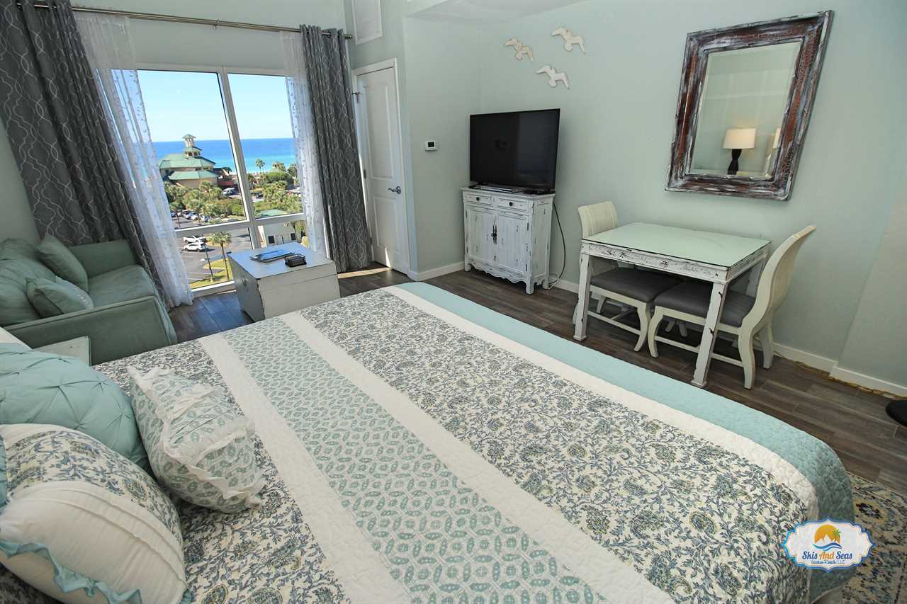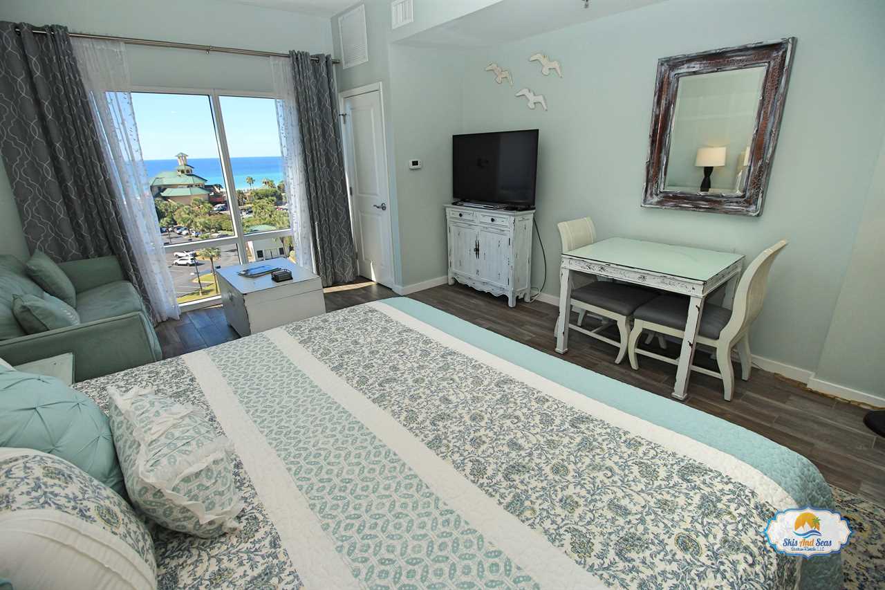 This fifth floor studio looks out over the Sandestin resort, the beautiful beaches and the Gulf of Mexico. The nicely appointed studio is part of a unique lock off set up and can be rented separately or in conjunction with the one bedroom condo next door. The studio option is perfect for a couple on a getaway weekend, a small family or if you have business or a conference at the Hilton.