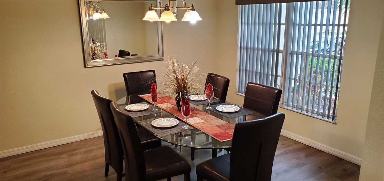 Featuring two spacious living areas, one with leather sectional sofa, flat screen TV with Roku to stream live tv or watch your favorite apps such as Disney plus and Netflix, DVD player and PlayStation. The family room also has leather sofas and and there is a separate dining area with seating for 6 people. The kitchen is fully equipped with all appliances, pots and pans, dishware, silverware etc and features a kitchen nook with seating for 4.