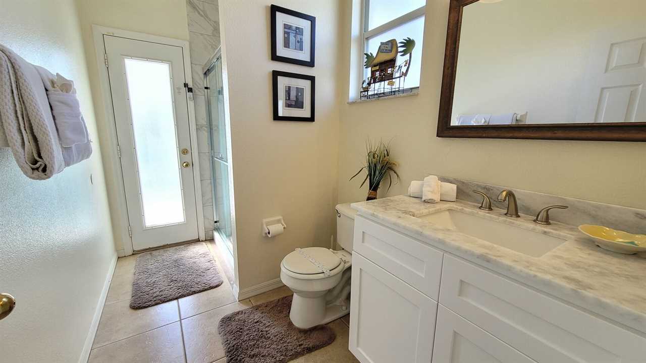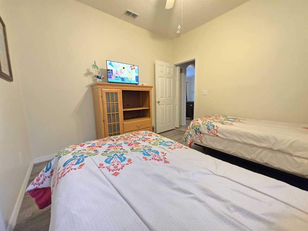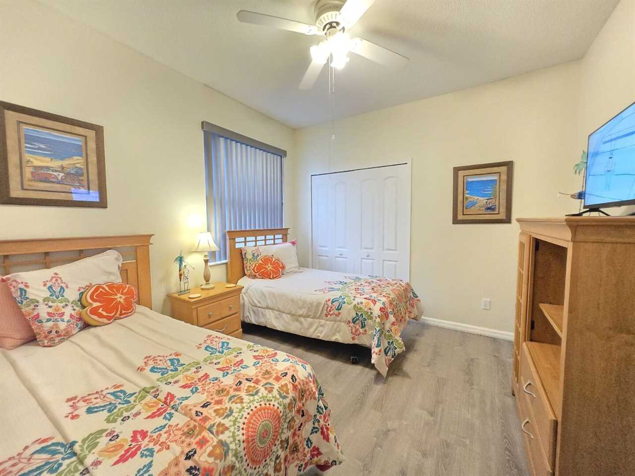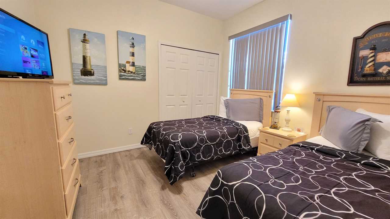 The master bedroom has a king size bed, 50" TV and ensuite bathroom which features stand-in shower, garden tub and double-sinks. The second bedroom has a queen sized bed and TV. The third and fourth bedrooms both have two twin beds in each and a TV. Total of 5 TV's in home.