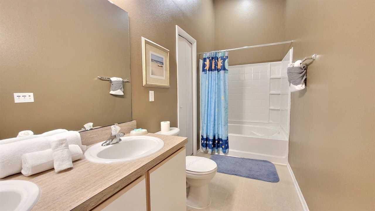 This home has two master suites, both with queen sized bed, ensuite bathroom and TV. The third and fourth bedrooms have two twin beds in each which share the third bathroom. The kitchen is fully equipped with all appliances including a full size fridge, stove, oven and microwave. The kitchen also offers cutlery, dishware, cookware, coffee and tea pot. Plenty of seating for the family at the breakfast nook which seats 4 and the dining room table which seats 6.