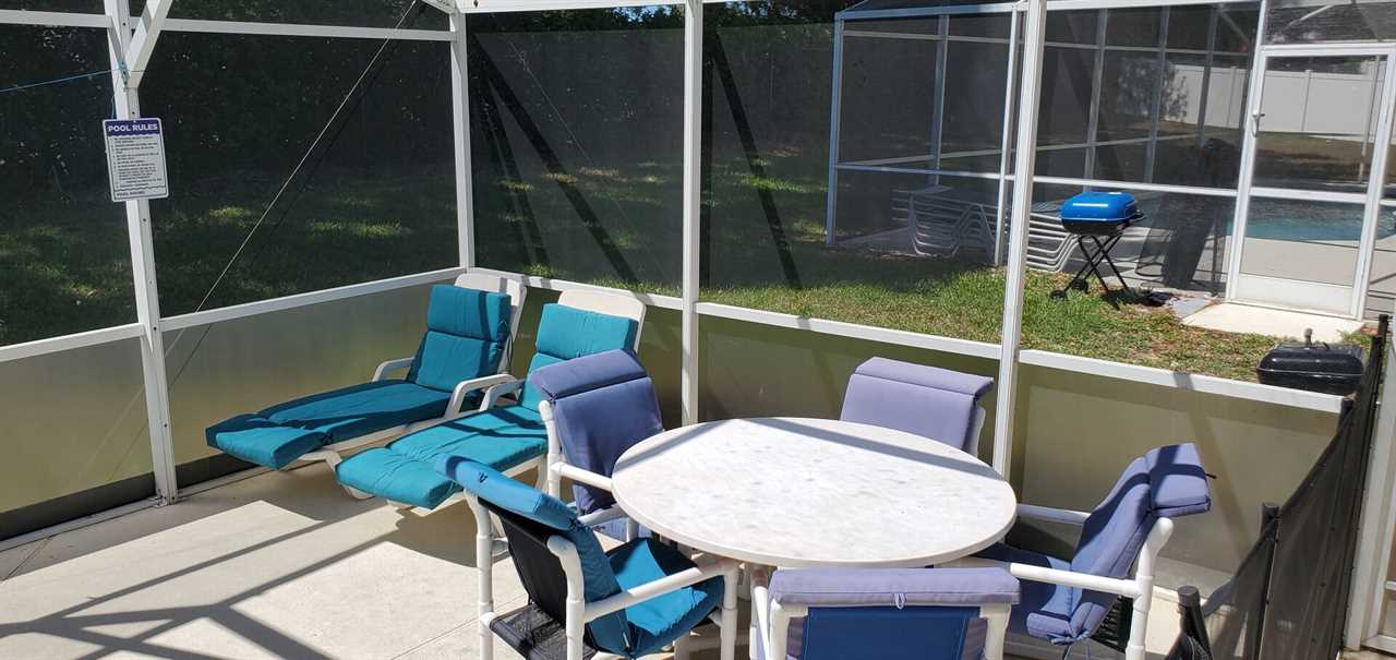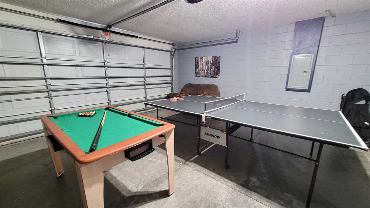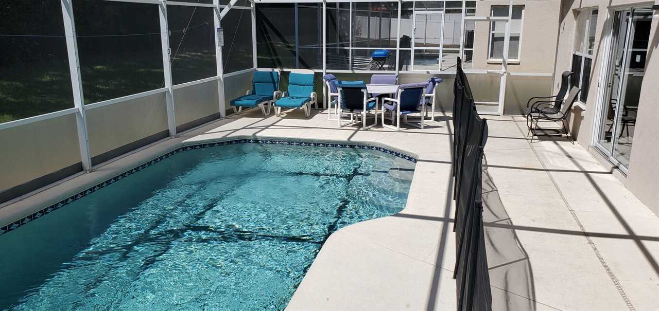 A full-sized washer and dryer, towels & linens, iron & ironing board and hair dryer are also included for your convenience. The private pool is screened in and can be heated for an additional supplement during the winter months. The garage has a games room to keep the kids entertained when resting from the parks.