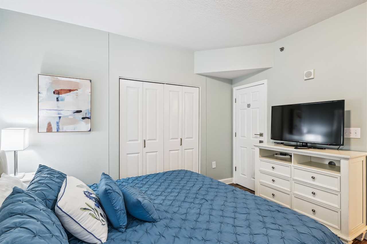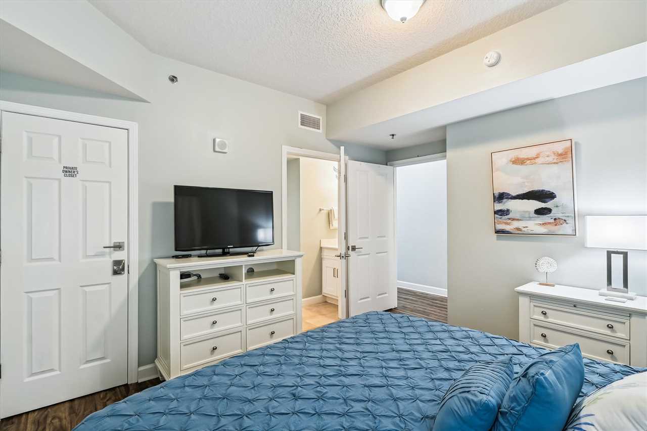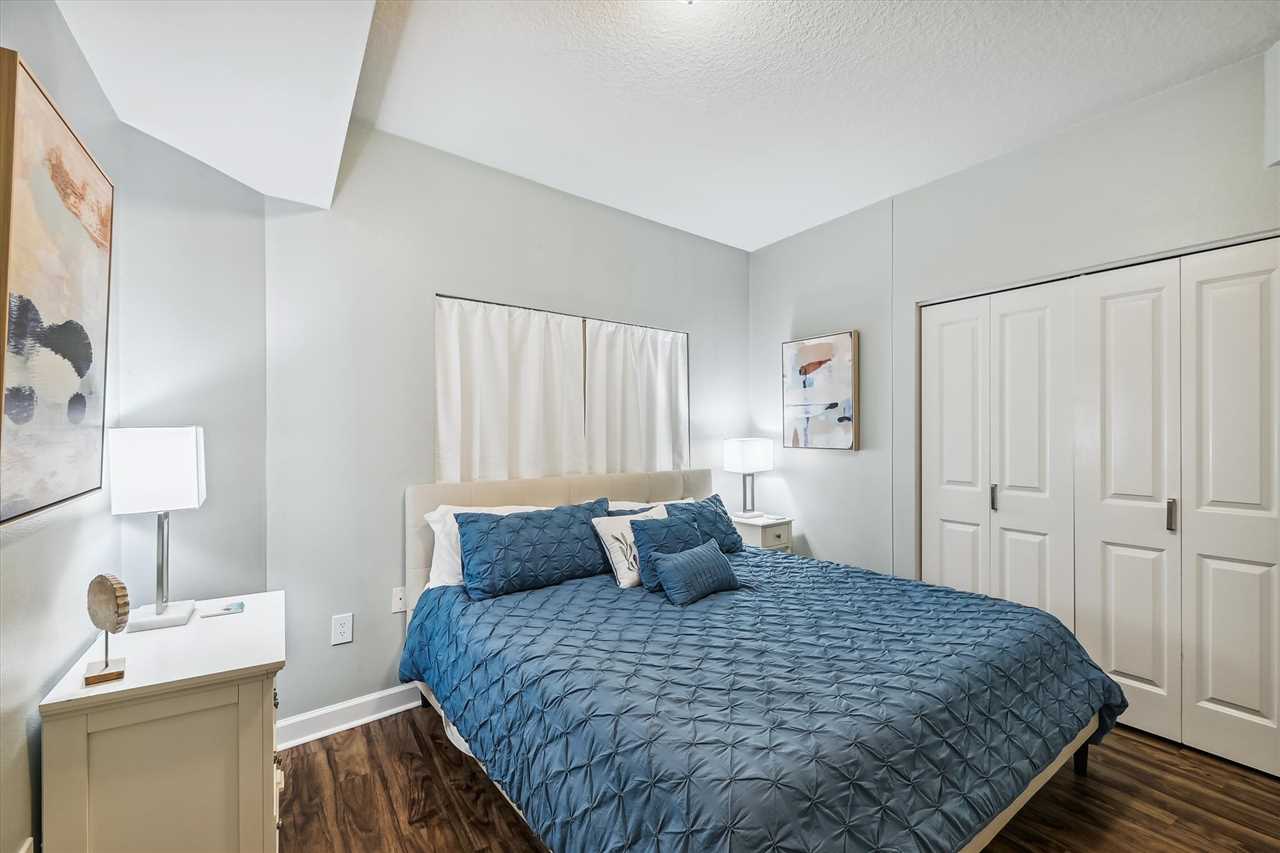 Head back to your cozy condo and venture into the bedroom. The master bedroom features a large, king-sized bed that is big enough for you to spread out and stretch your muscles. Or you can share your king-sized bed with your partner and snuggle underneath the soft linens and plush comforter. We guarantee that you will get a great night of sleep!