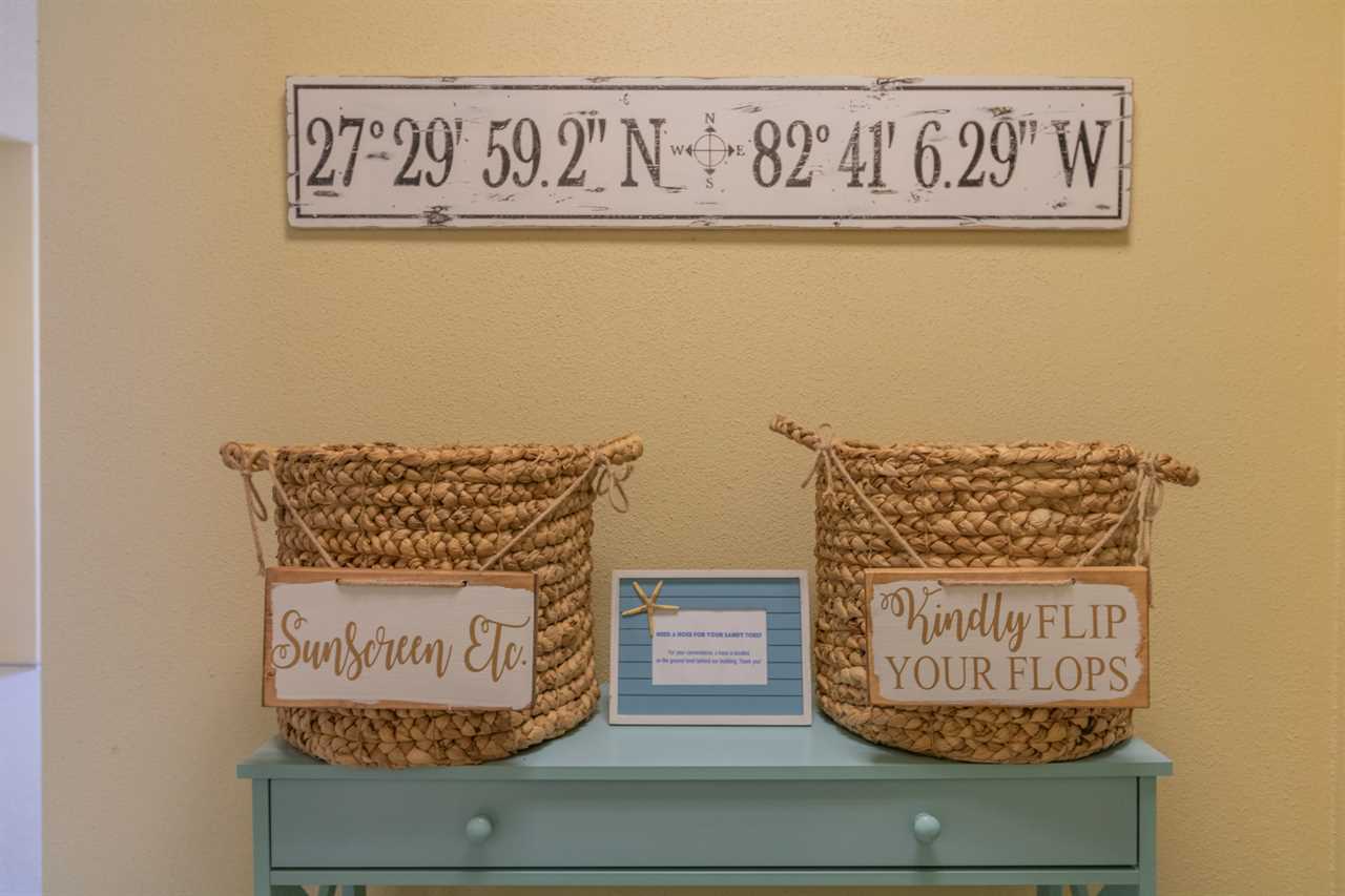 extra hanging hooks in bathrooms and entry foyer for wet suits & towels