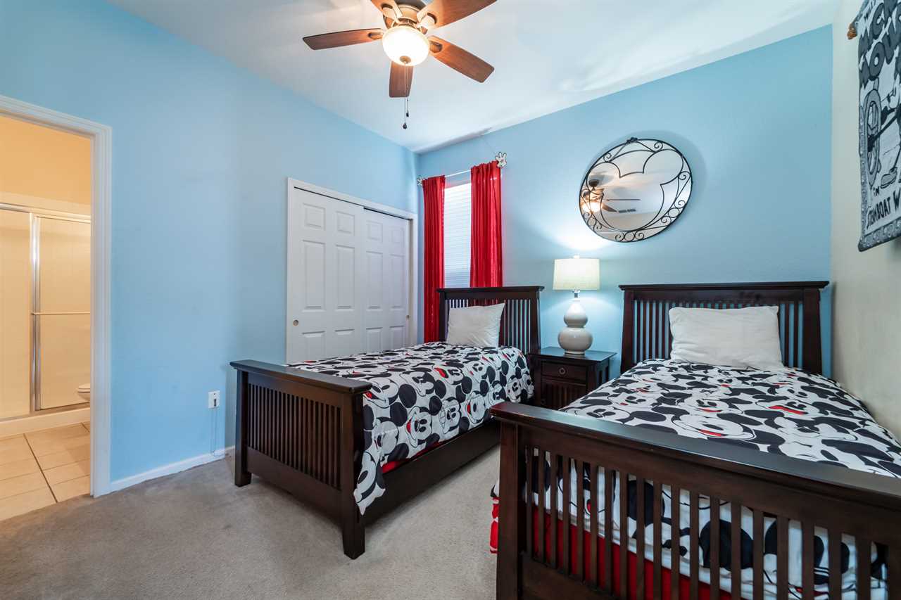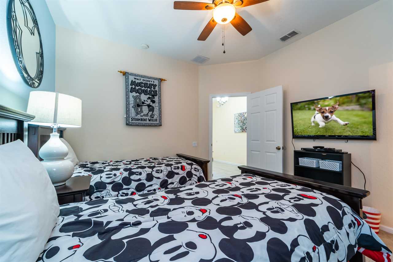 Bedroom 1 – Twin Beds | Mickey Themed | TV | Shared Bath