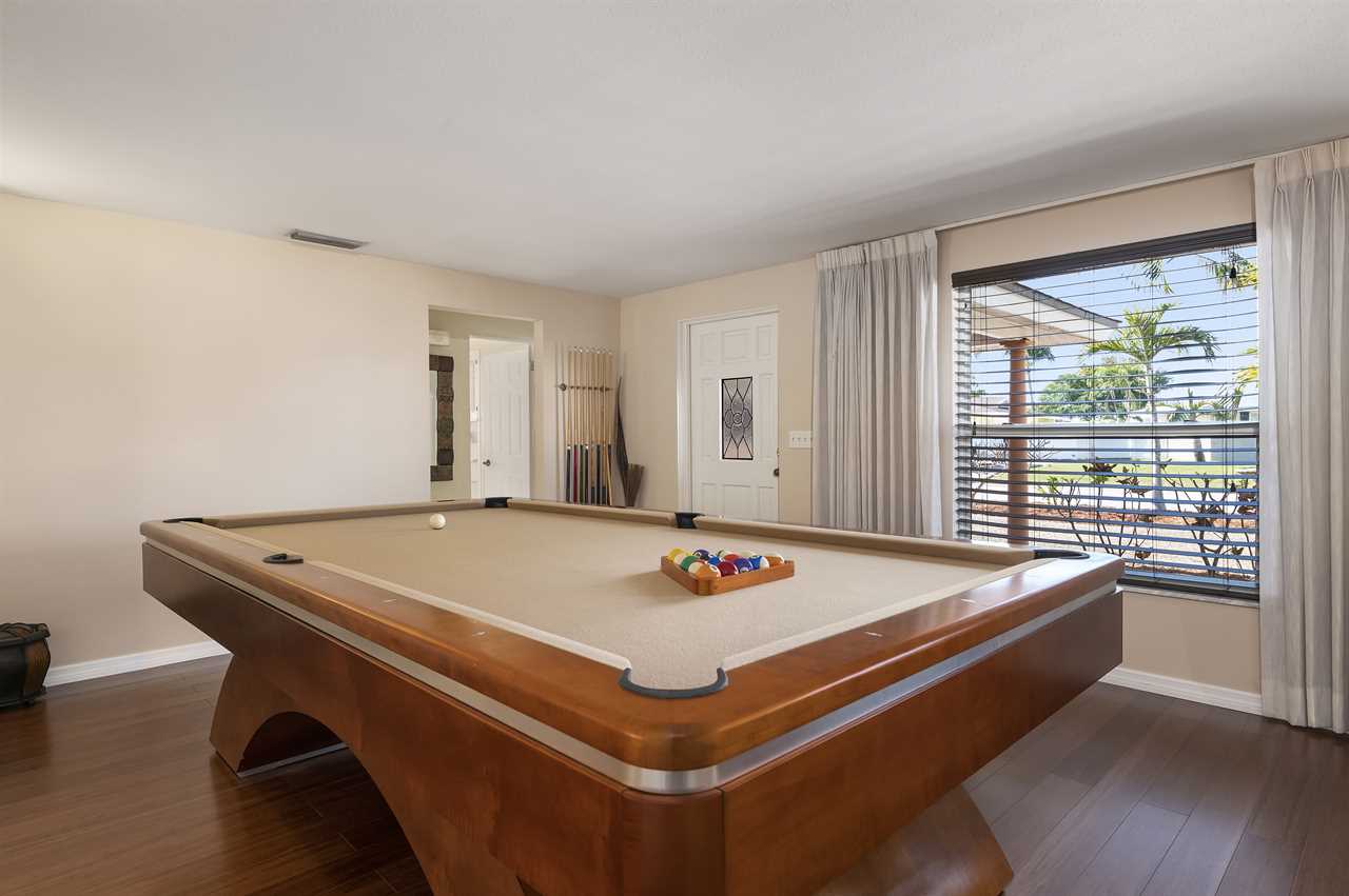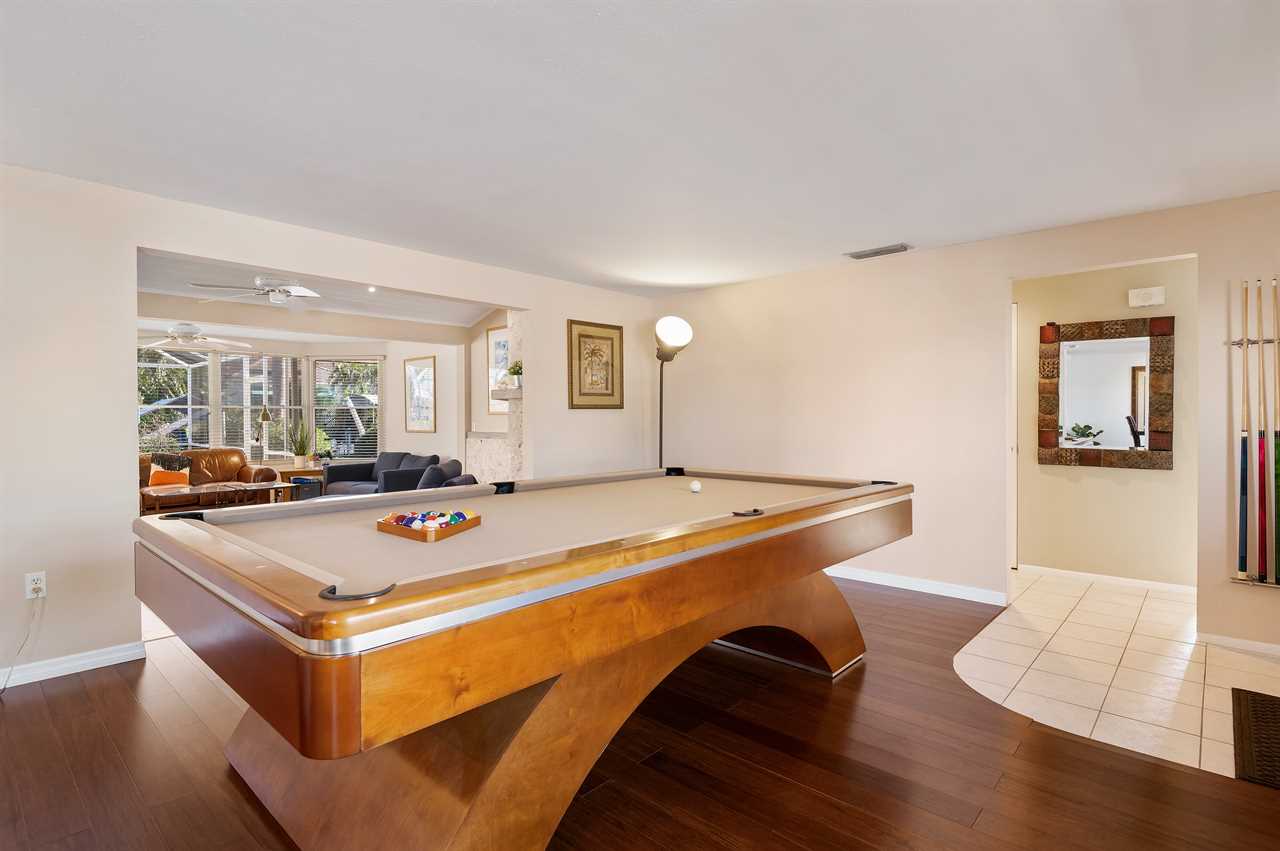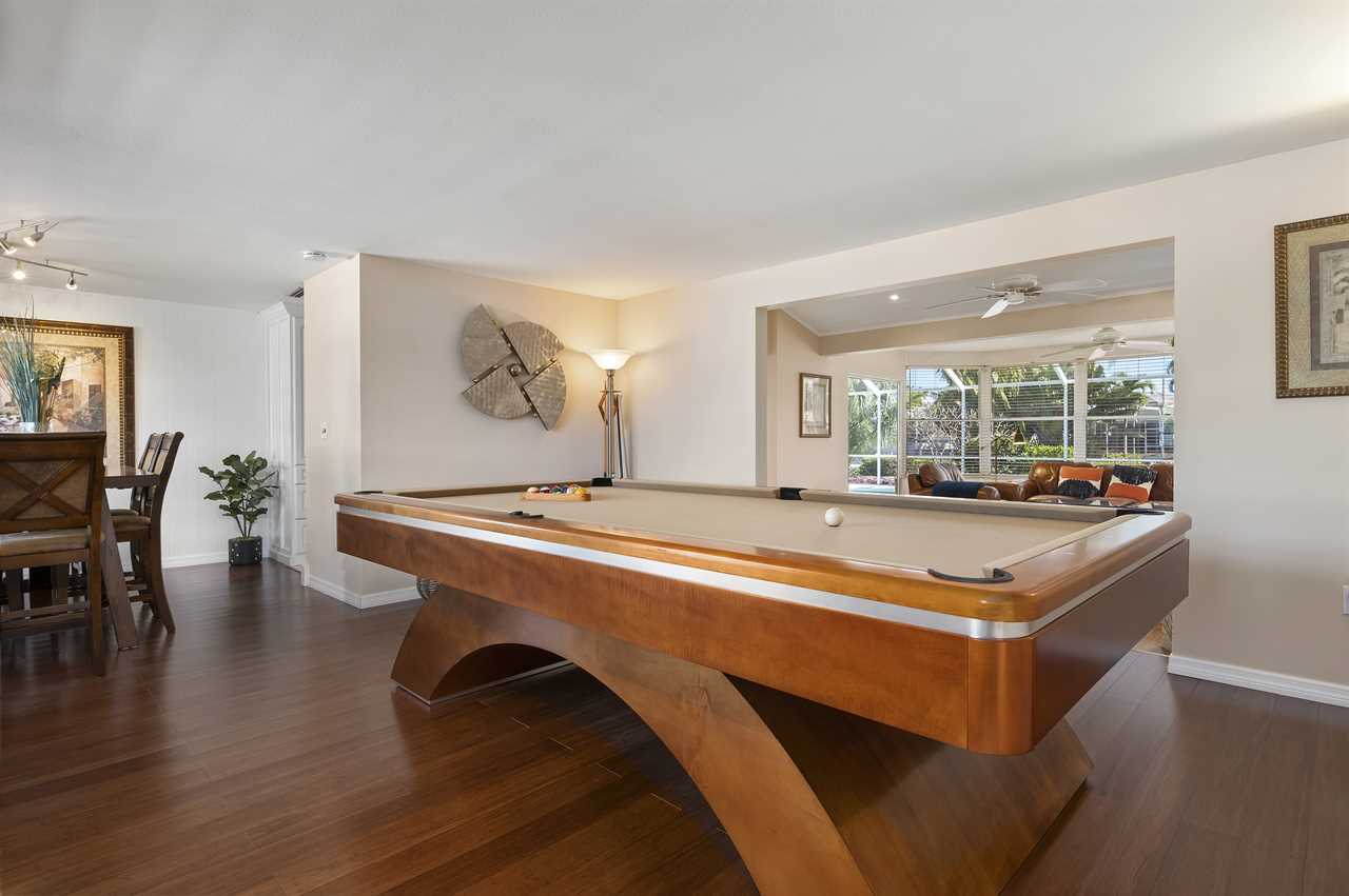When pulling up to the property you instantly notice the well-manicured exterior and large driveway! Walking into the front door your eyes are instantly pulled to all the natural light coming off the back of the property overlooking the pool and canal. The main living space offers a large flat screen smart TV and has plenty of space for seating for everyone to gather around and play games and enjoy family time! For your enjoyment, you also have a professional-sized Billards table available for use.