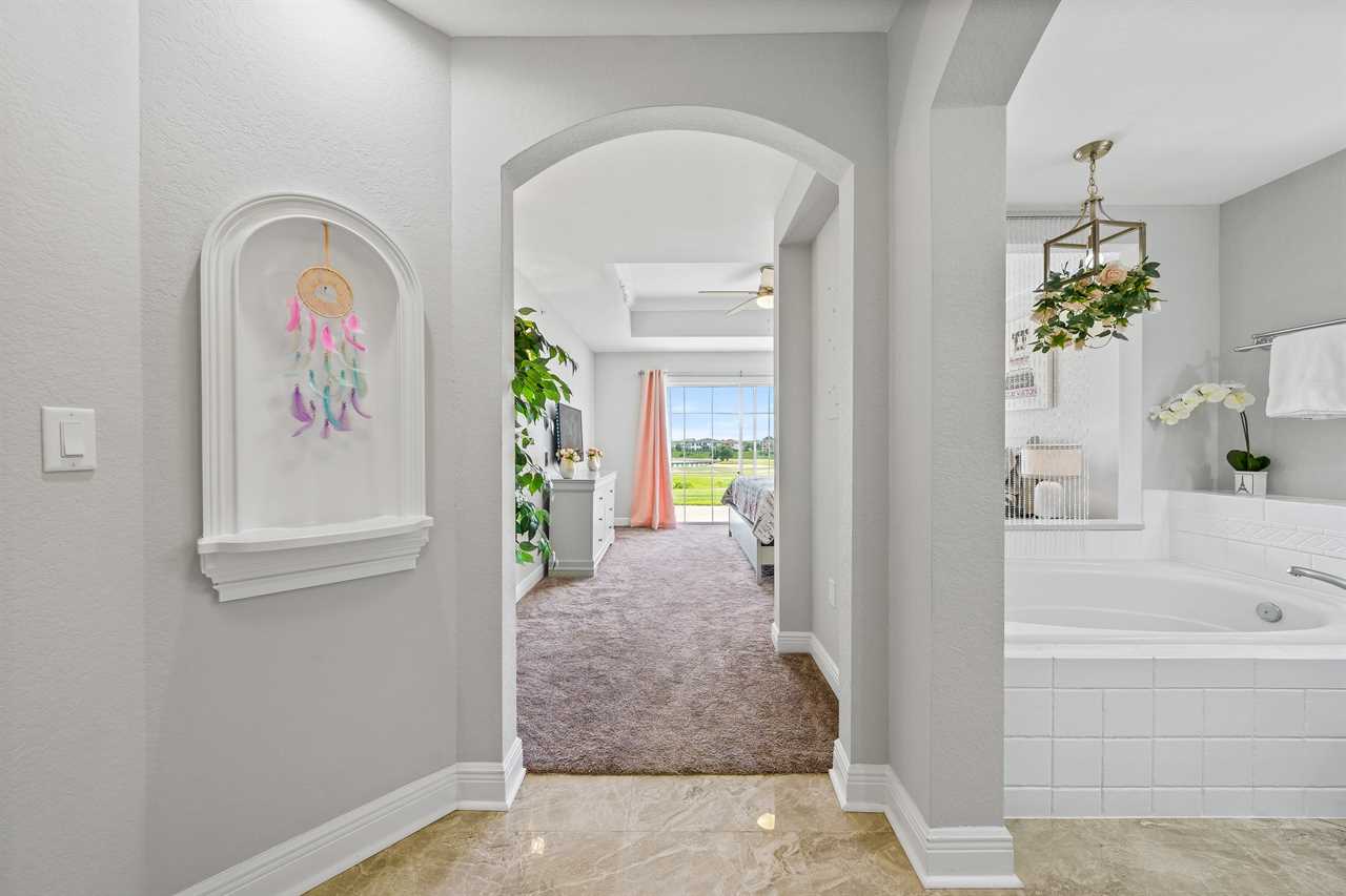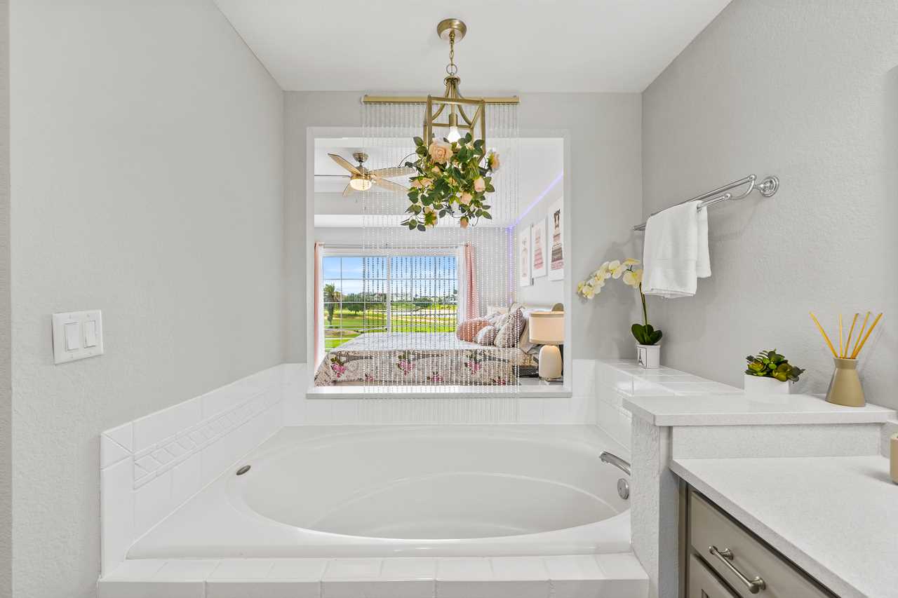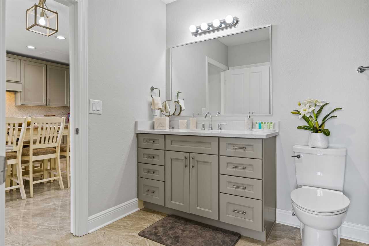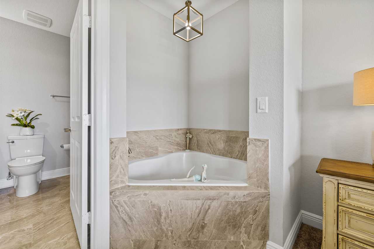 Downstairs there is an en-suite king master bedroom with its own private balcony to enjoy your morning cup of coffee and relax. A 43" Smart TV and the bathroom has a large garden tub in the bedroom and a separate stand-up shower. The second bedroom has a superhero-themed bedroom with two twin beds and a tub/shower combo bathroom. The upstairs en-suite king bedroom has a 43" SMART TV and a beautiful view of the resort golf course. The bathroom has a large bathtub and a separate stand-up shower. Enjoy the patio area with seating for two and soak in the Florida sun!