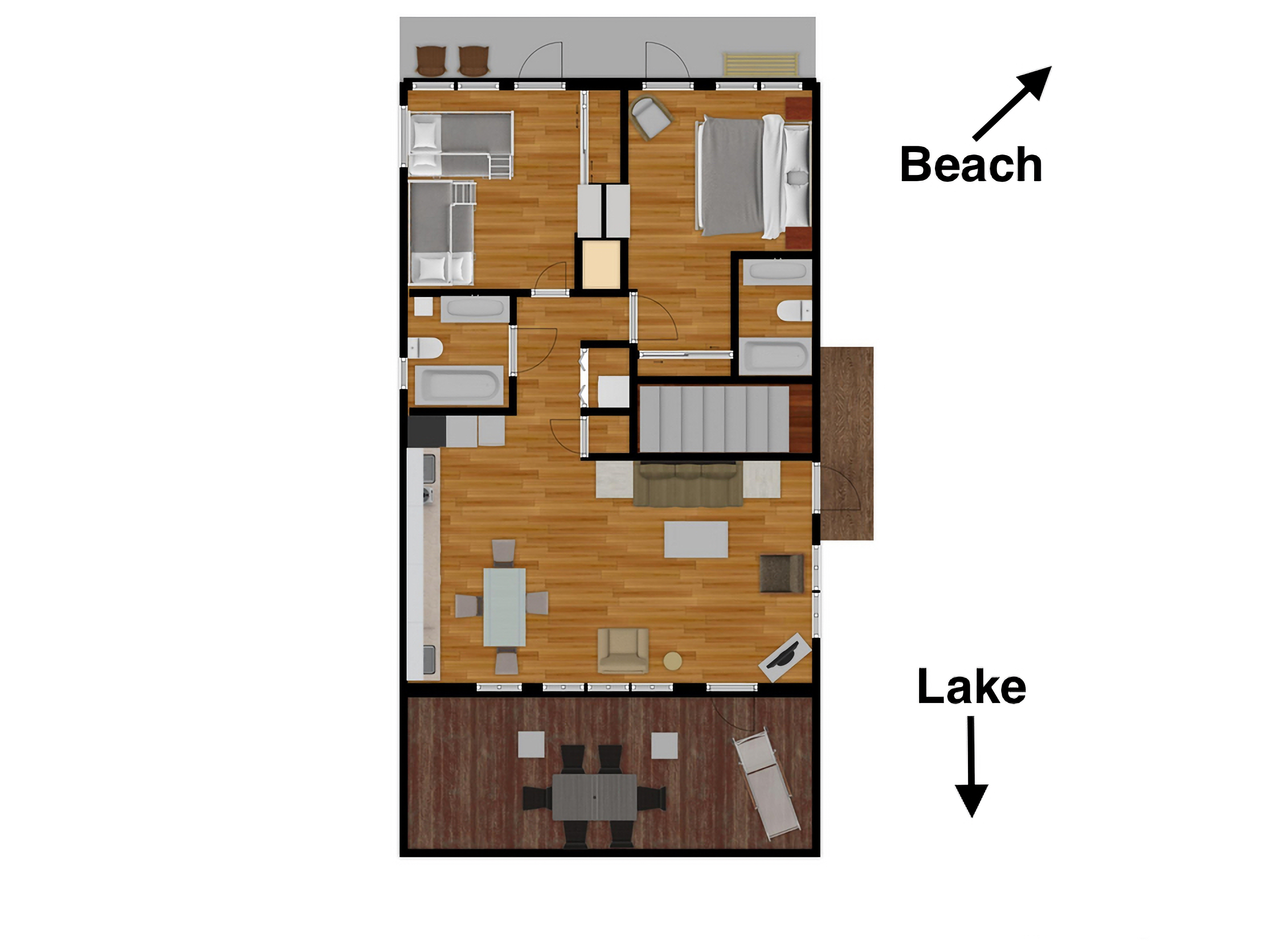 ・Easy Ground-Level Access: Minimal steps to enter (only 3) and all living spaces are on a single level--ideal for unloading beach gear and groceries.