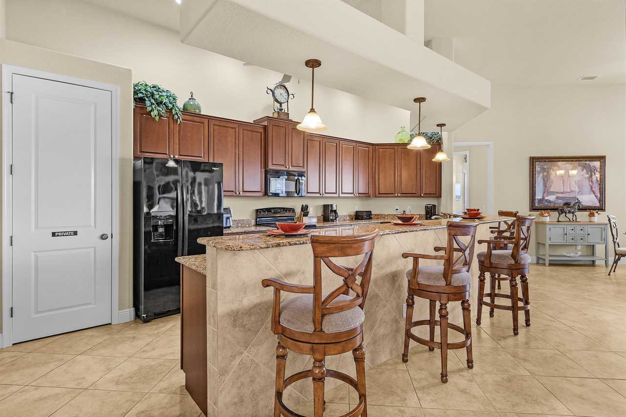 This gorgeous custom home features a great room with entertainment center, large flat screen streaming TV, PlayStation 3 with Blu Ray player and Wi-Fi throughout home. The open kitchen offers breakfast bar seating and granite counters, formal dining room, and breakfast nook. Bright wide-open spaces!