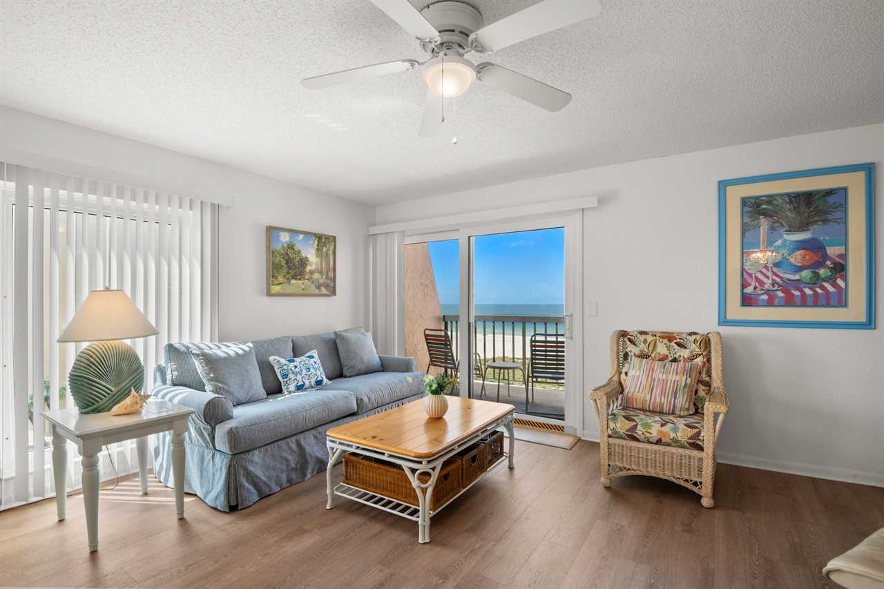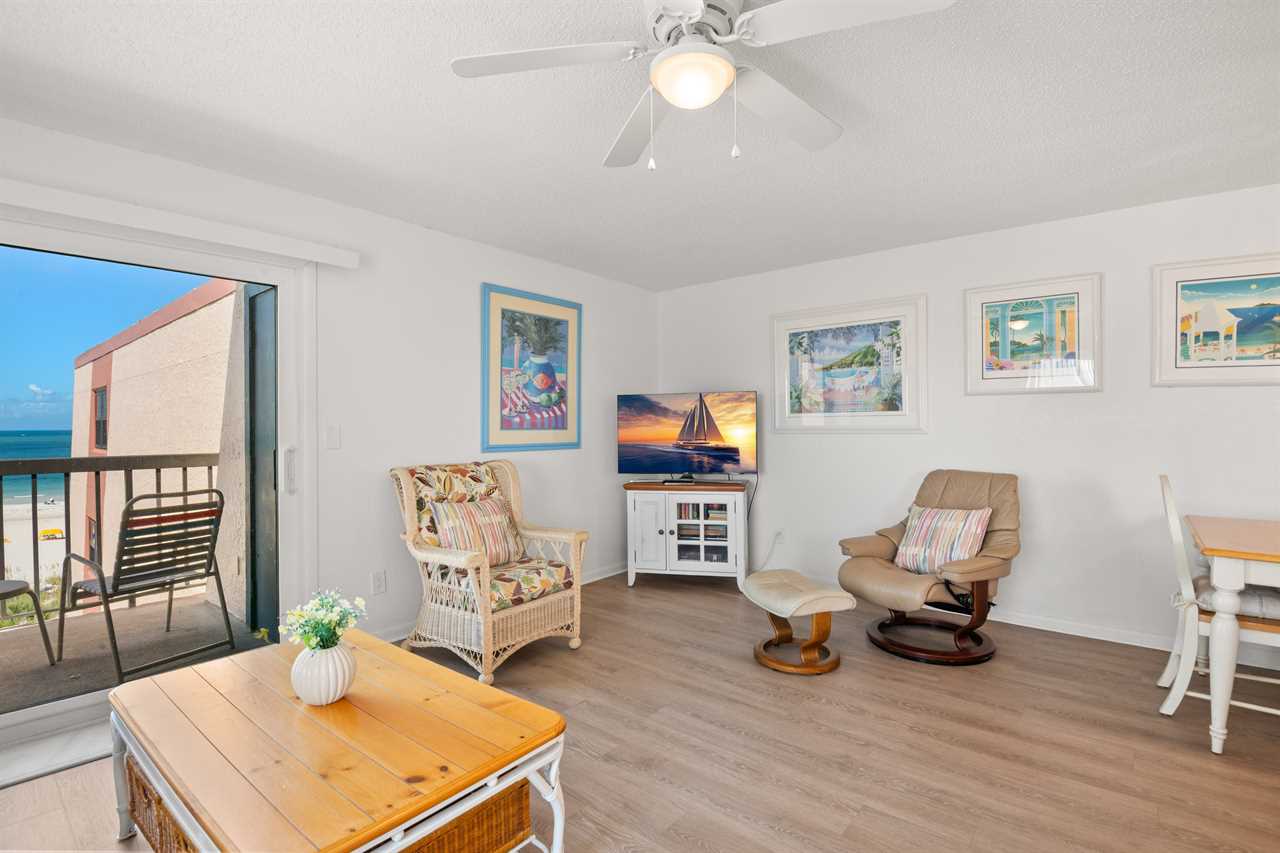 Welcome to Unit 501, a fully furnished 850 sq ft 1-bedroom, 1.5-bath condo offering a peaceful retreat with balcony views of the beach and Gulf. Set back from the front of the building, this unit provides a quieter vantage point while still capturing the beauty of the shoreline.