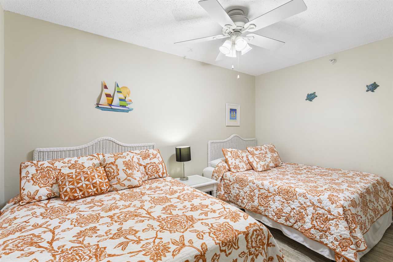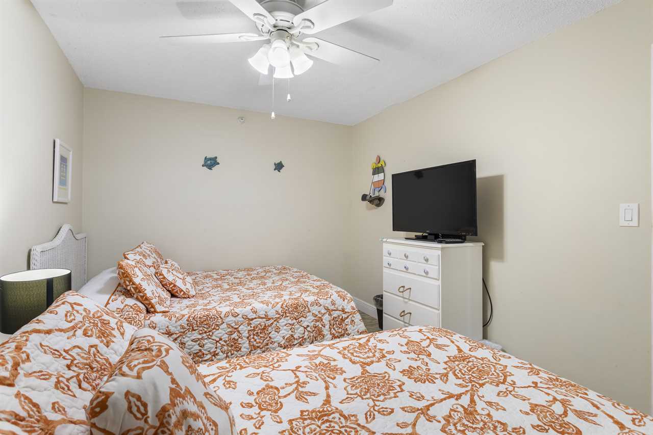 | Second Bedroom | One queen + one full-size bed, flat screen TV |
