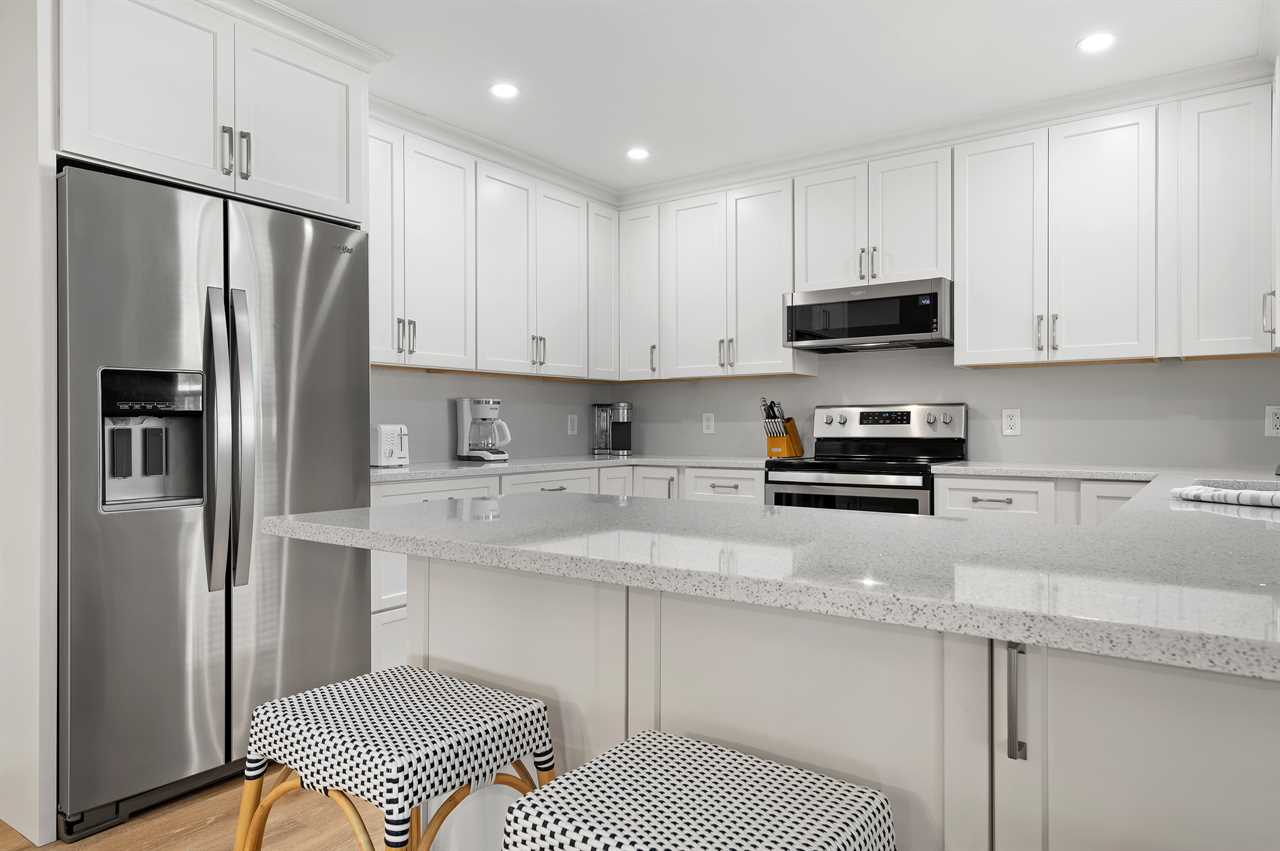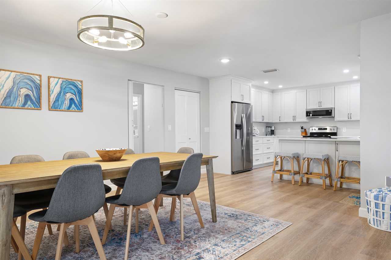 The kitchen comes fully equipped with everything needed to make your favorite home-cooked meals and be able to eat in and enjoy the house! A few bonus items include a french press, slow cooker, rice cooker, air fryer as well as a Keurig. For seating, you have a dining room table inside as well as additional seating around the kitchen bar. A high chair as well as a pac-n-play is available for use as well.