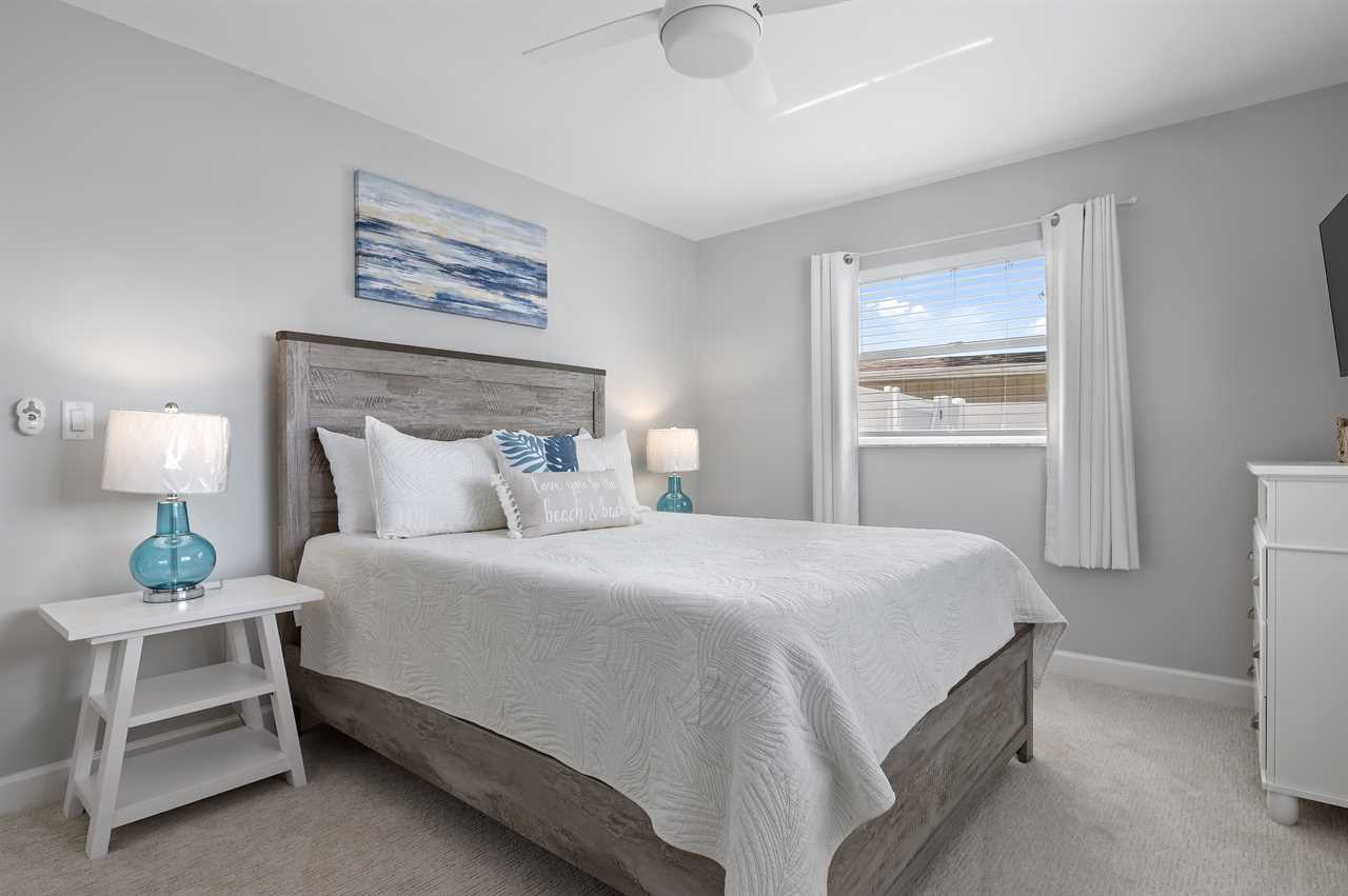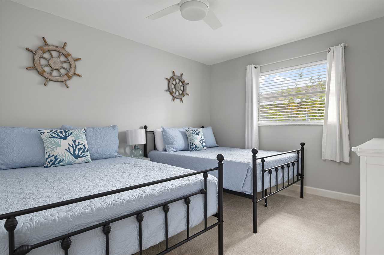 Trying to figure out sleeping arrangements? The property offers a split floor plan with the Master Bedroom on the right side of the house along with two additional bedrooms on the left side of the house. The master bedroom offers a King size bed, Smart TV, walk-in closet, and ensuite bathroom. One of the additional bedrooms has a Queen size bed and Smart TV while the other bedroom has two Full size beds and shares a hallway bathroom.