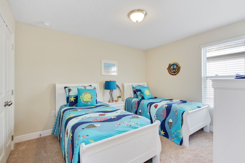 Bedroom 4 - Two Twin beds, 32" TV with a shared bathroom with Bedroom 5 (upstairs)