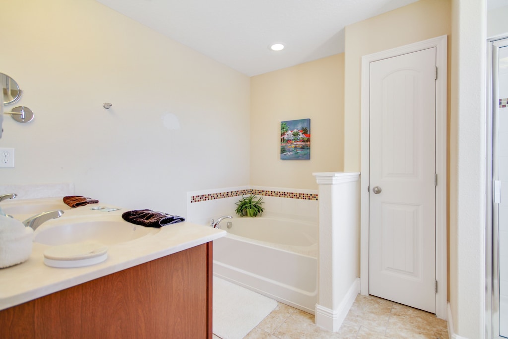 Escape to paradise at our inviting vacation rental located in the heart of Solterra Resort, just minutes away from the magic of Disney World! This stunning 5-bedroom, 4.5-bathroom villa offers the ultimate vacation experience with its south-facing private pool and spa.