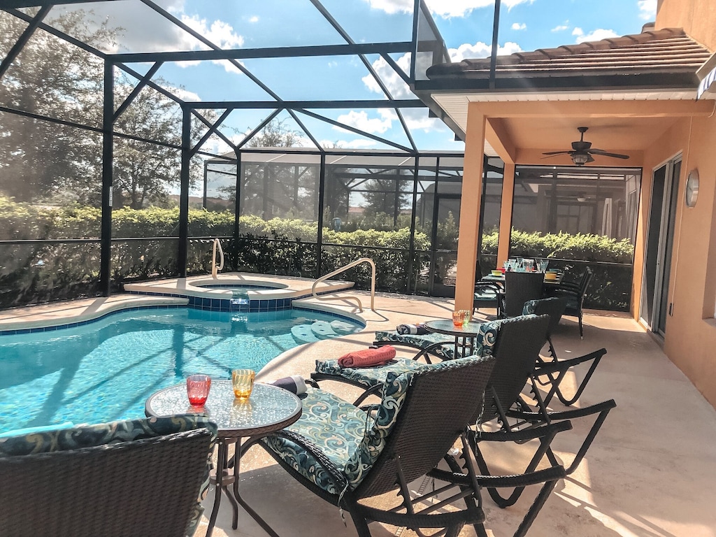 The villa is located in Davenport, which is 12 miles from Disney and close to other parks and many golf courses! When you are on your way you will pass through Champions Gate which has grocery stores, restaurants and coffee shops. It is a beautifully laid out area. About 4 miles from the villa is Posner Park with stores such as Target, Starbucks, a movie theatre and several other shops and restaurants. Plenty of spots for any additional needs you may have during your stay.