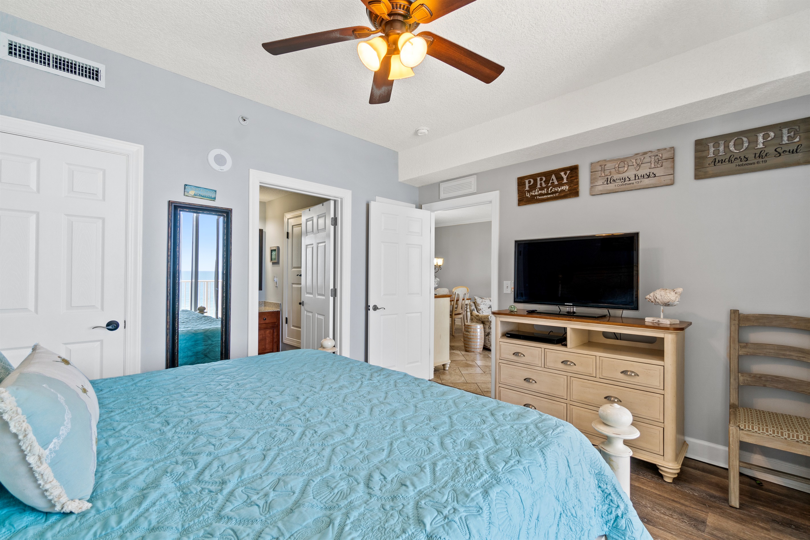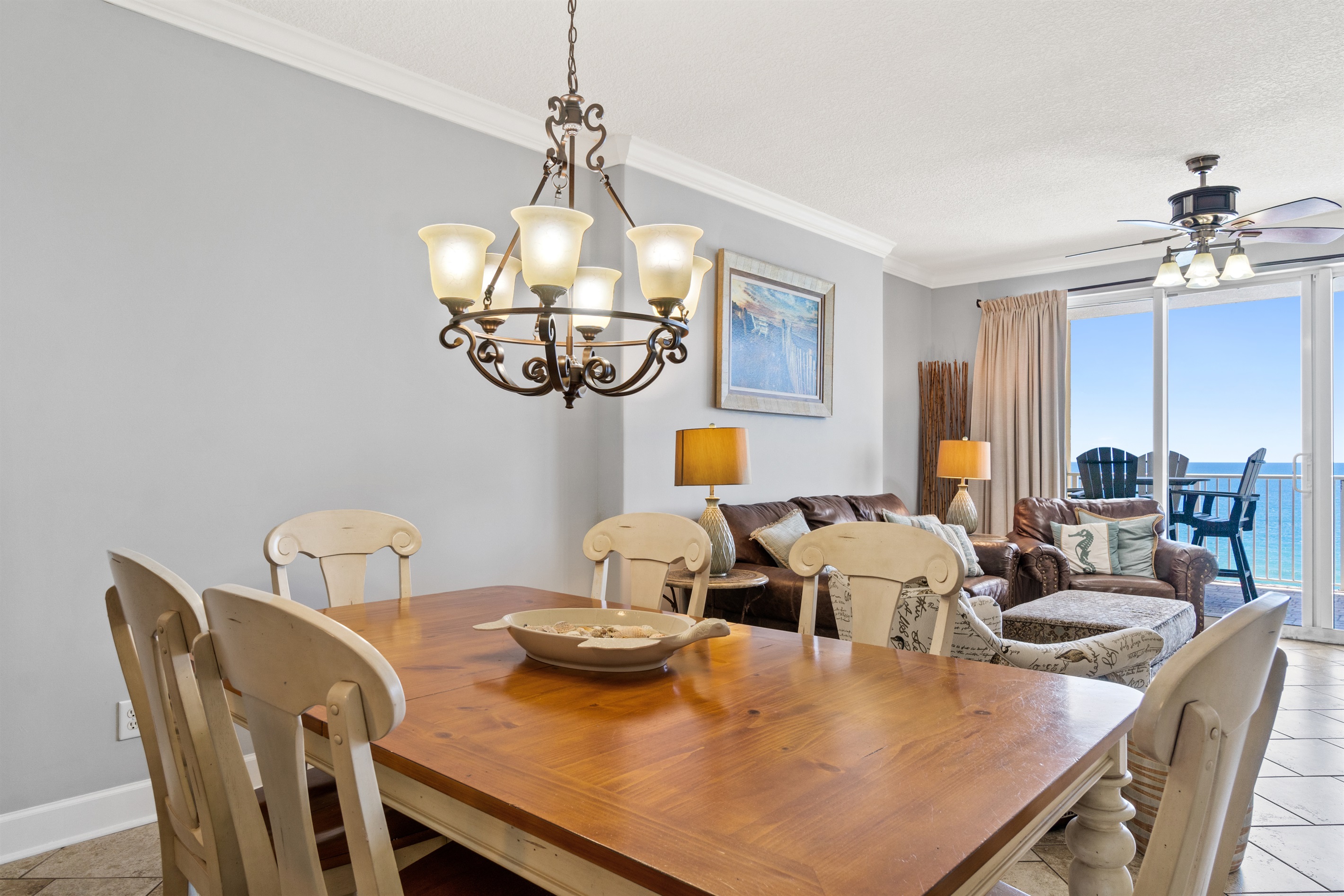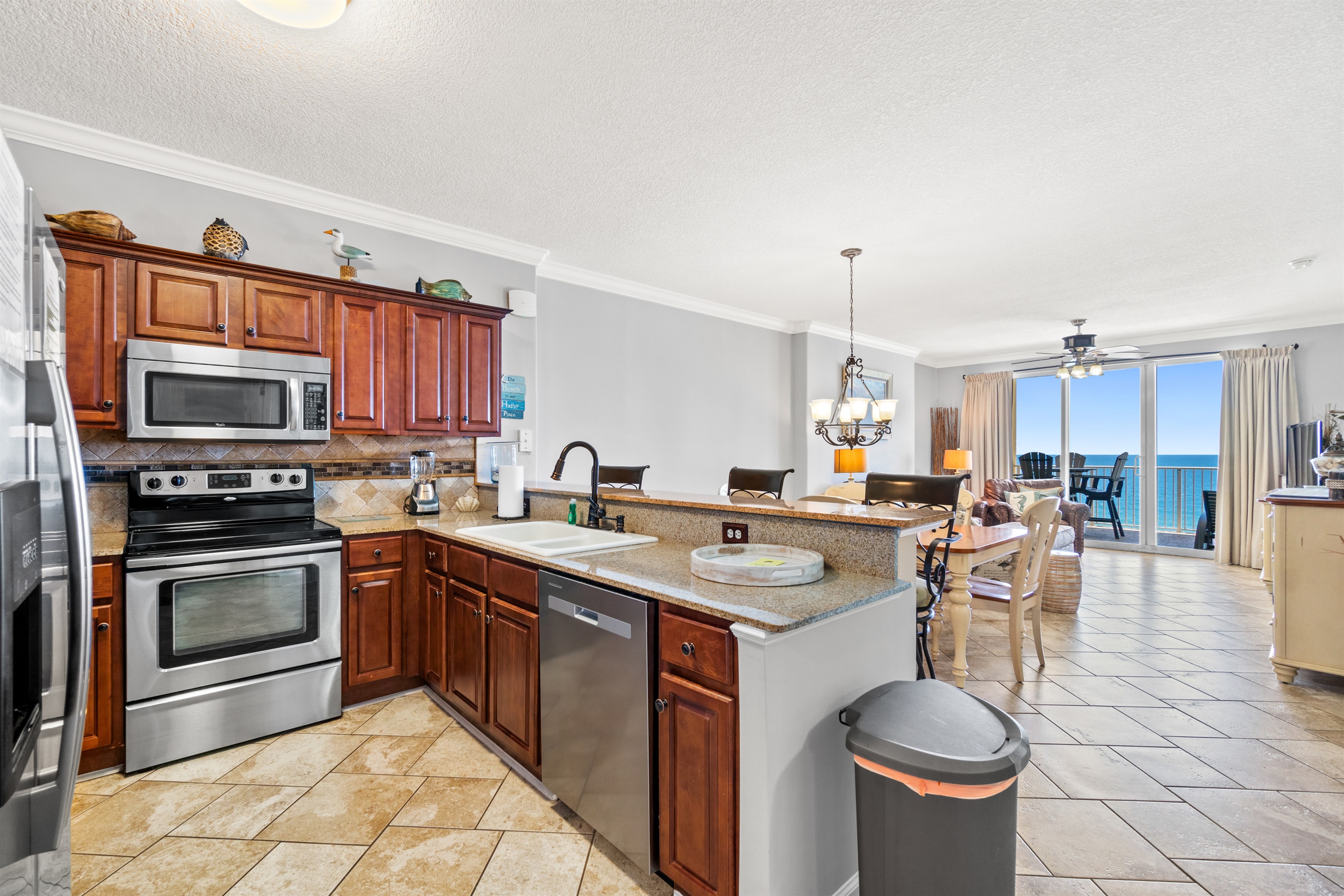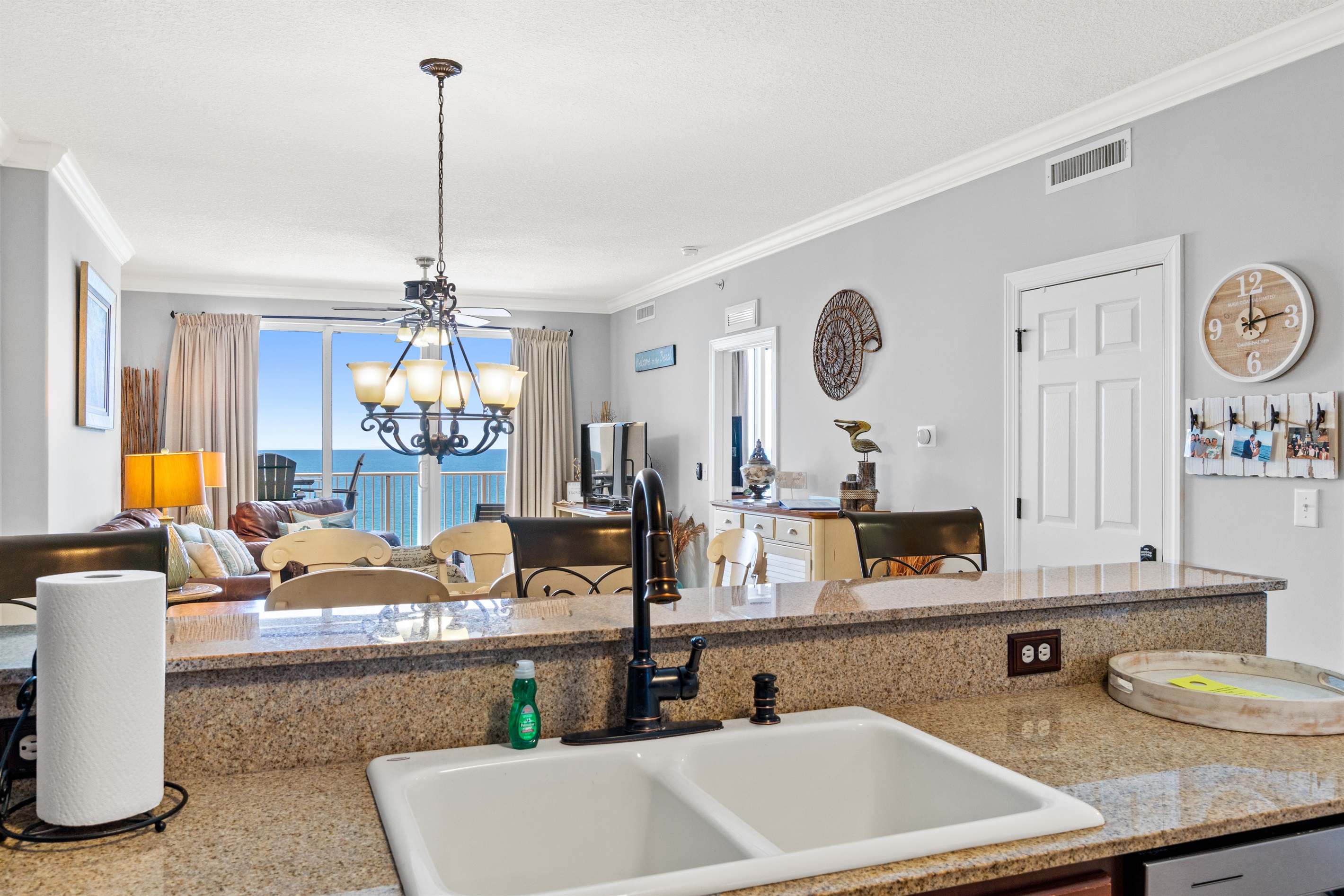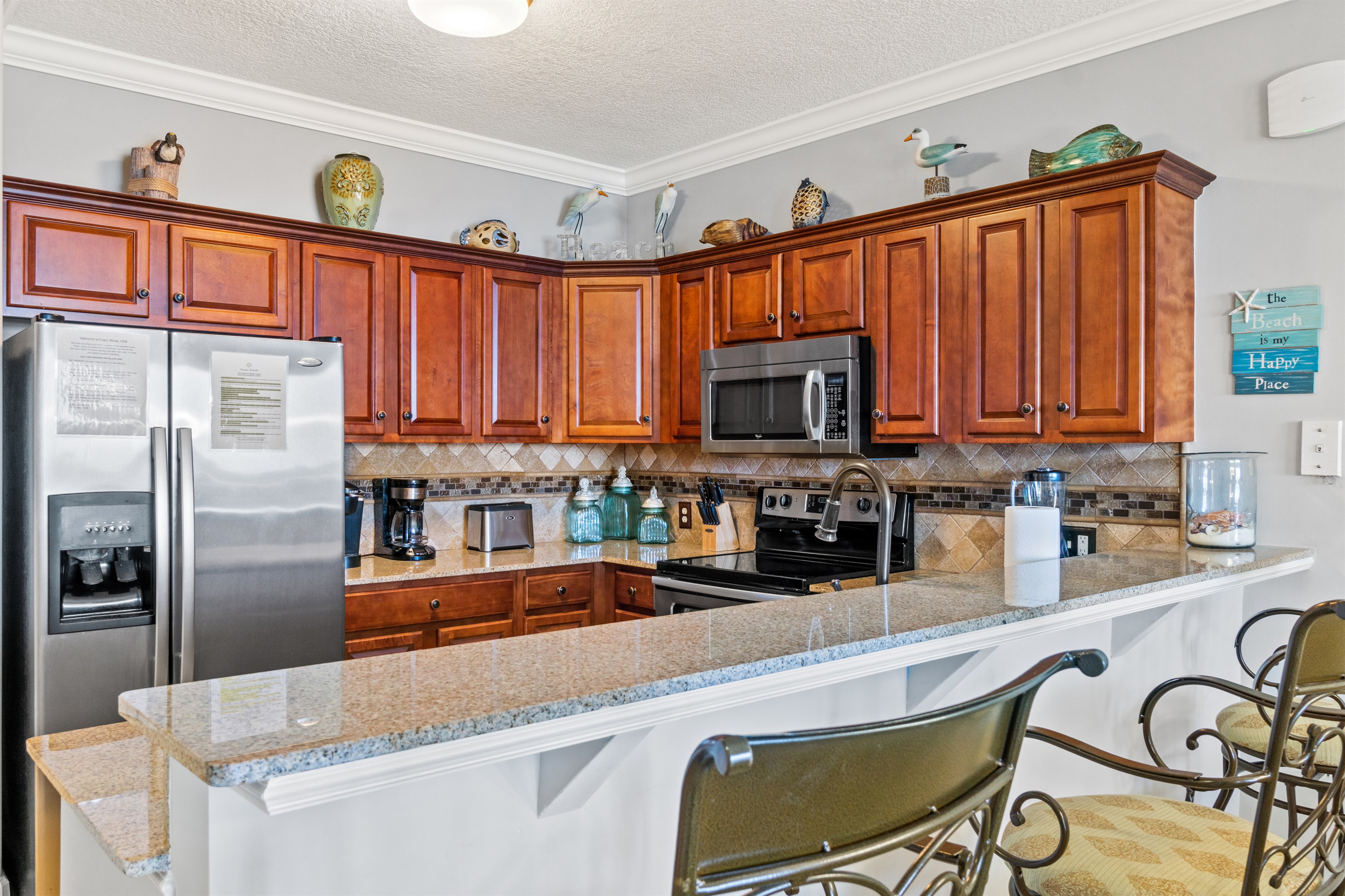 Located on the 10th floor, Not too High and Not too Low, this contemporary professionally designed 2 bedroom, 2 full bath condo will provide you with the luxury and comfort needed to rejuvenate your mind, body and spirit. Purchased in September 2018 this unit operates on a keyless entry system. The new owners have spared no expense with new décor and furnishings. Your condo features a well appointed kitchen with mahogany cabinets, granite countertops, custom backsplash and upgraded stainless steel appliances. The dining area is very spacious and will seat a total of 6 comfortably for your entertaining needs. The separate laundry room includes a stackable washer/dryer and has ample space for drying out beach towels.