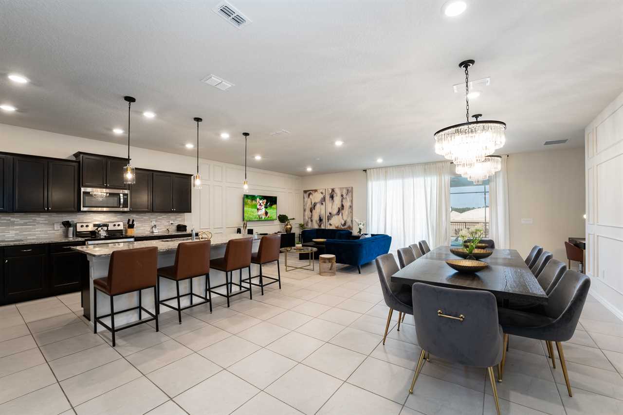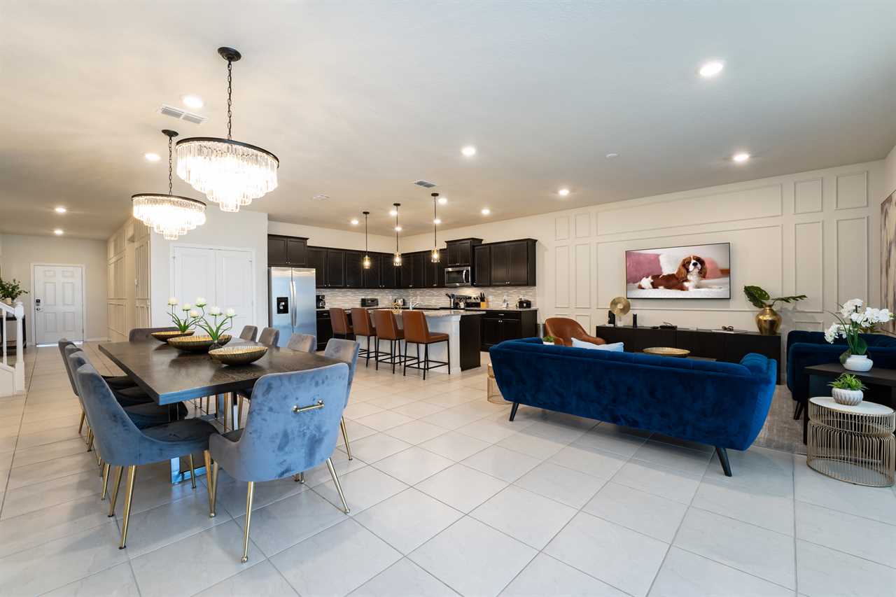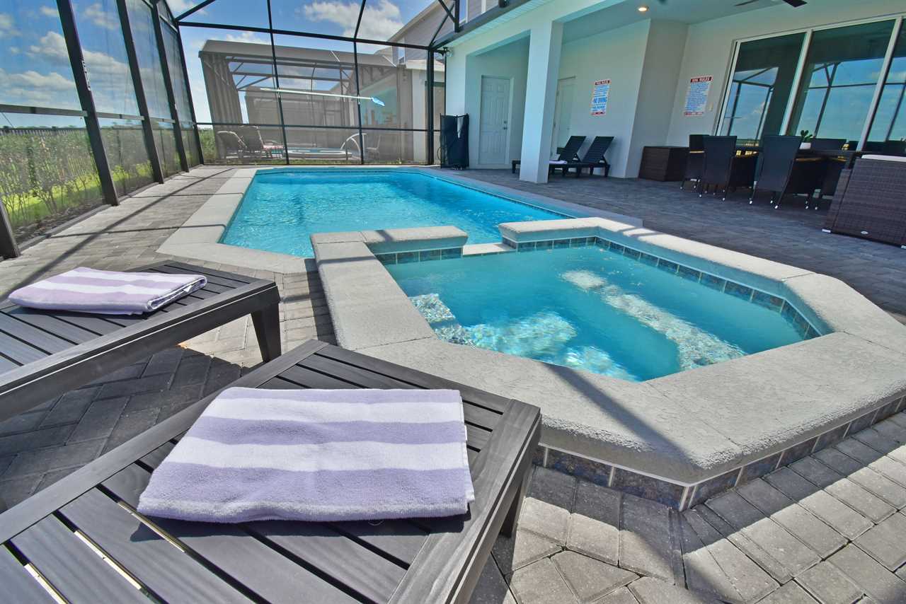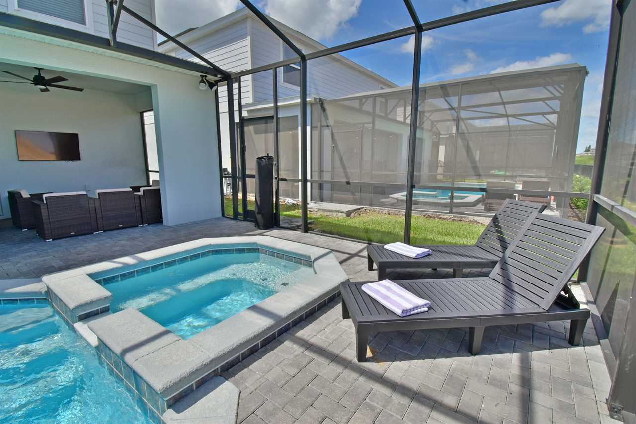 Enjoy the private backyard pool and bubbling spa, perfect for unwinding after a day of adventure. The air-conditioned, themed games room is another highlight, offering endless fun for all ages. The open floor plan on the main level is bathed in natural light, creating a bright and spacious living area.