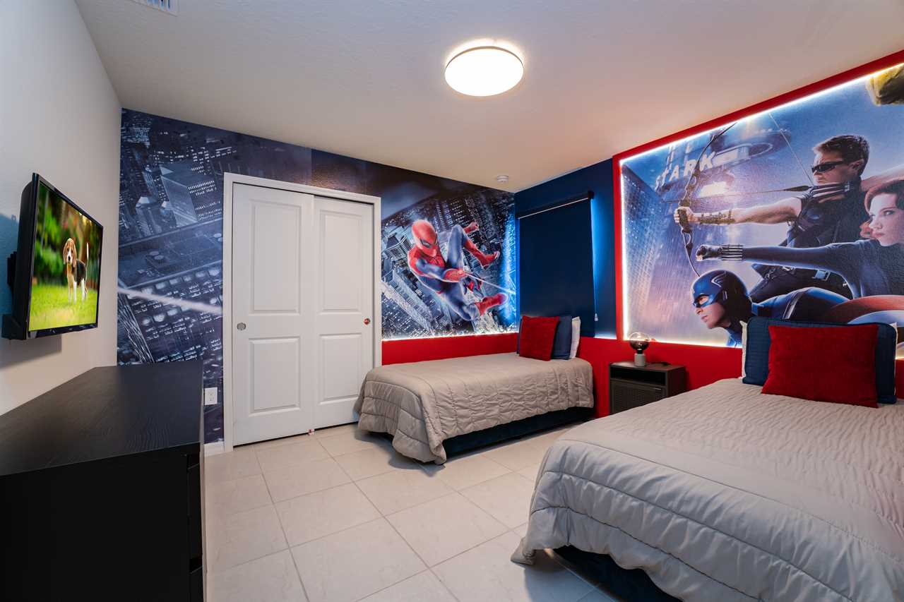 Bedroom 5 – Themed Room | Twin Beds | TV | Shared Bathroom