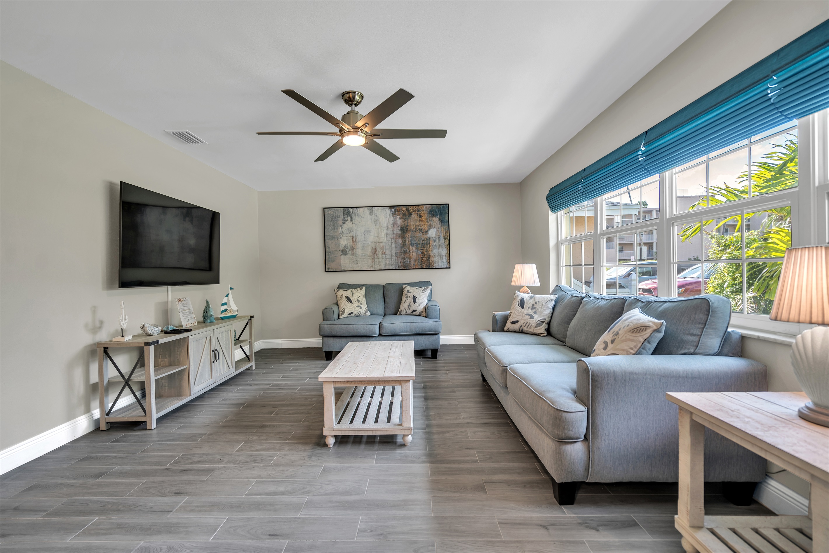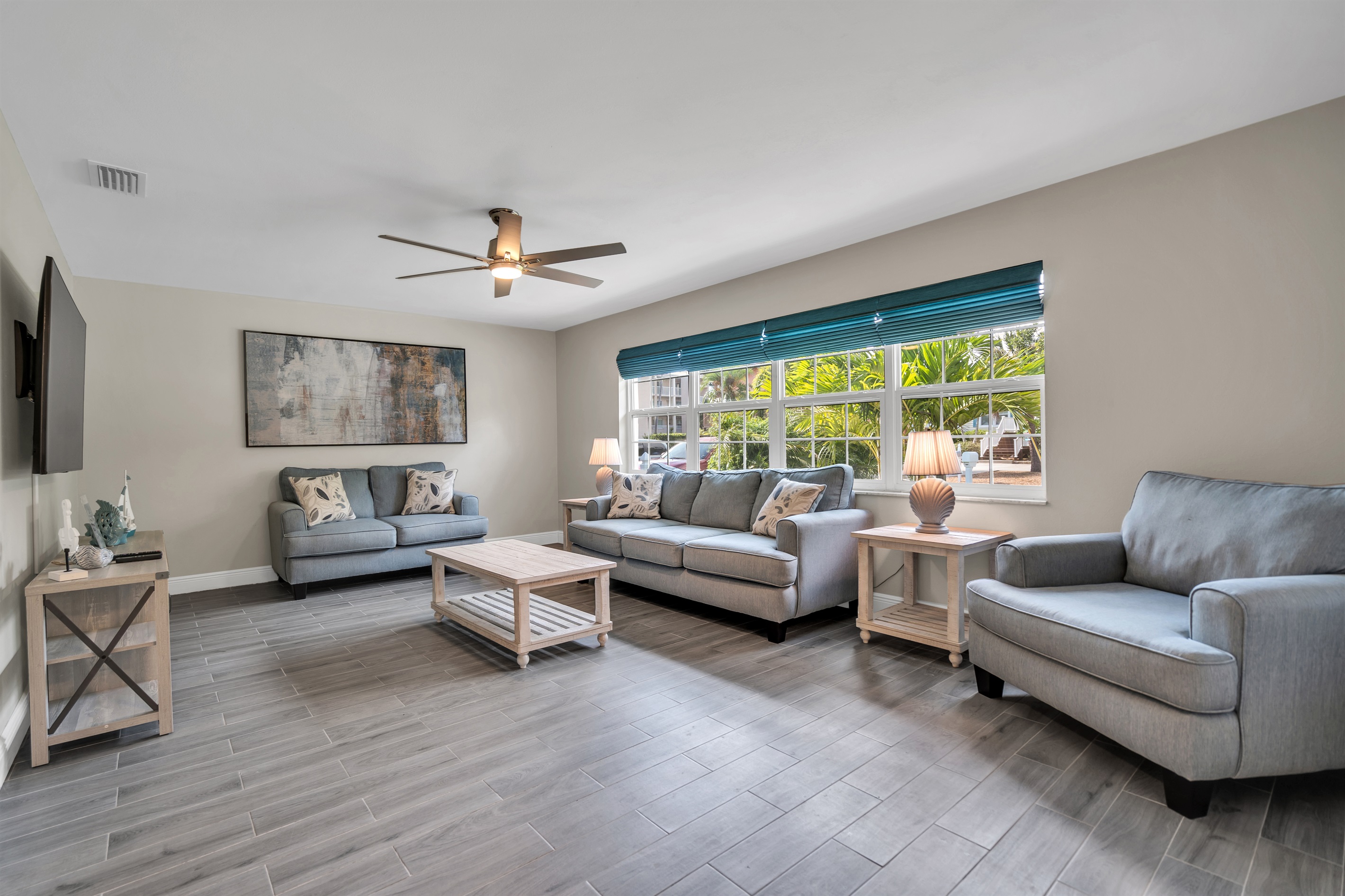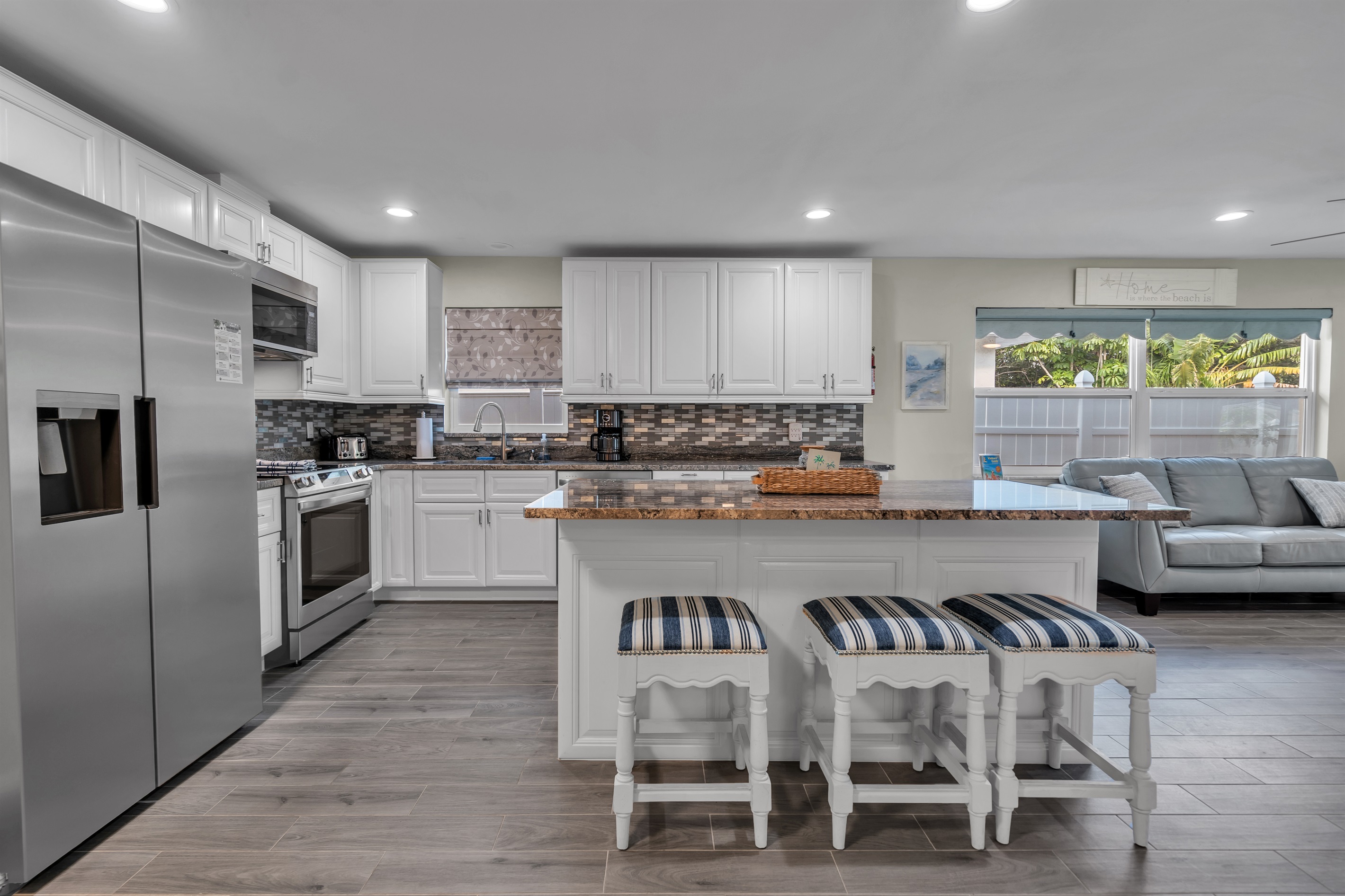 Blissful beach days await at this beautiful beach house, where you can take it easy in the patio area, overlooking the grassy backyard or lounge beside the water at Indian Rock Beach. With a sunny interior full of comfortable new furnishings and a convenient location steps from the water, this house is an ideal retreat!
