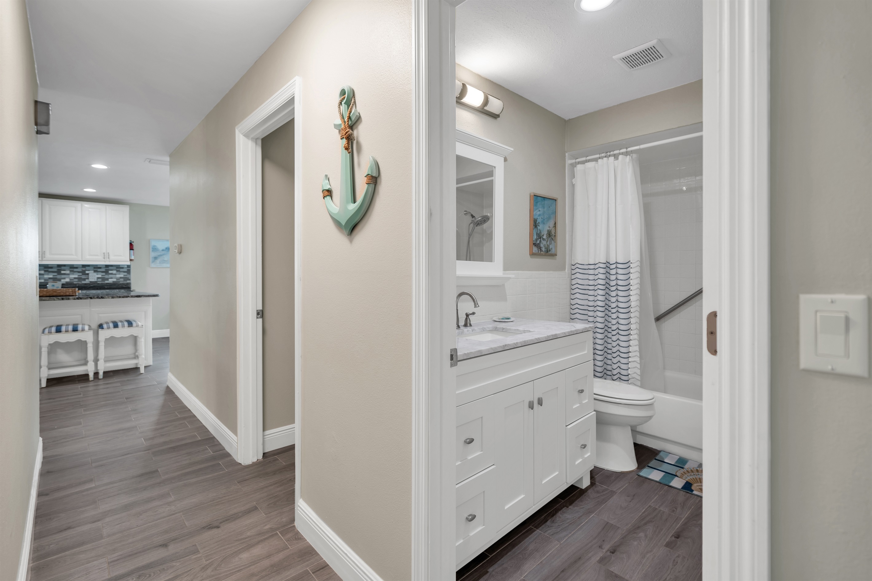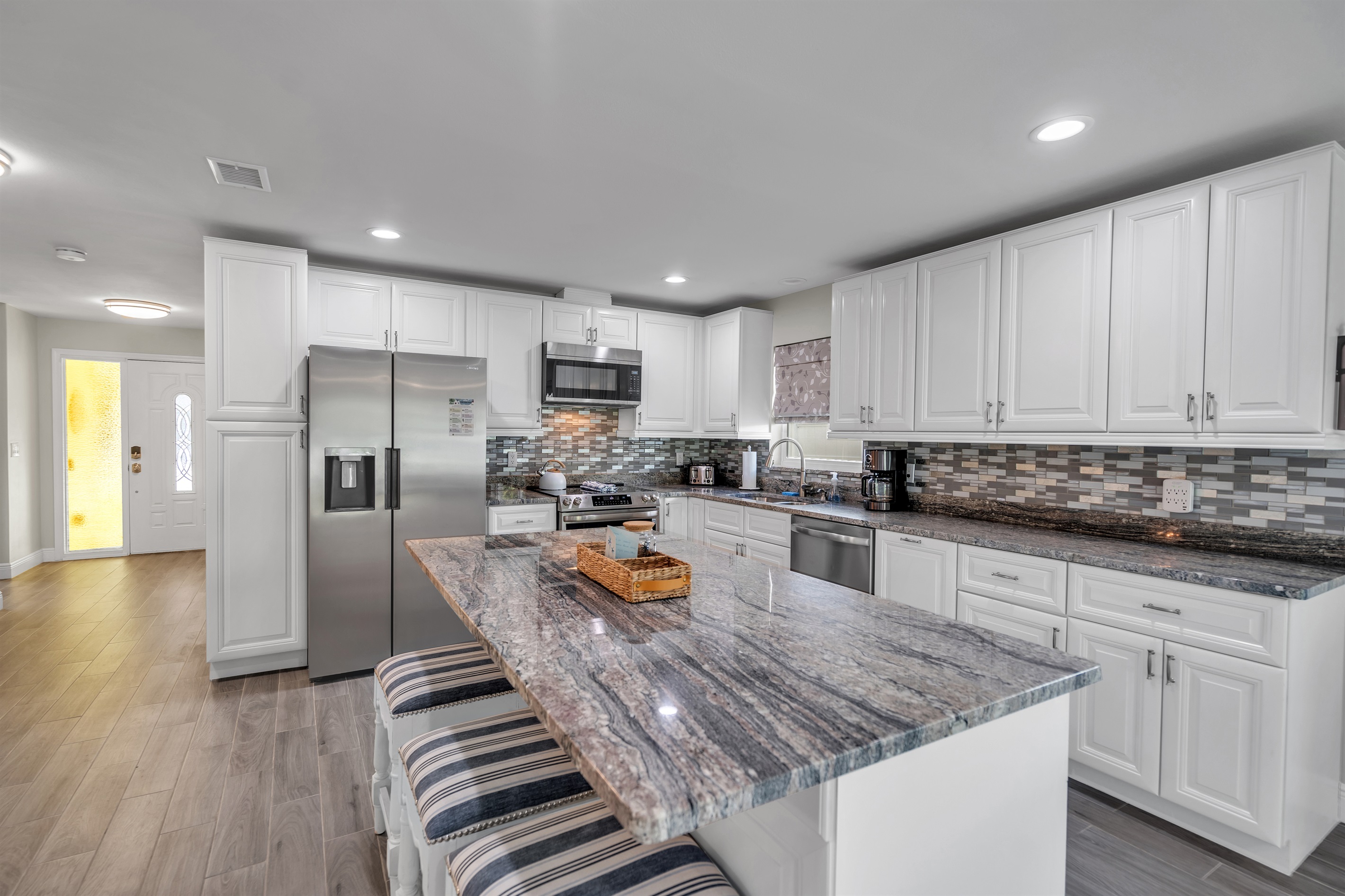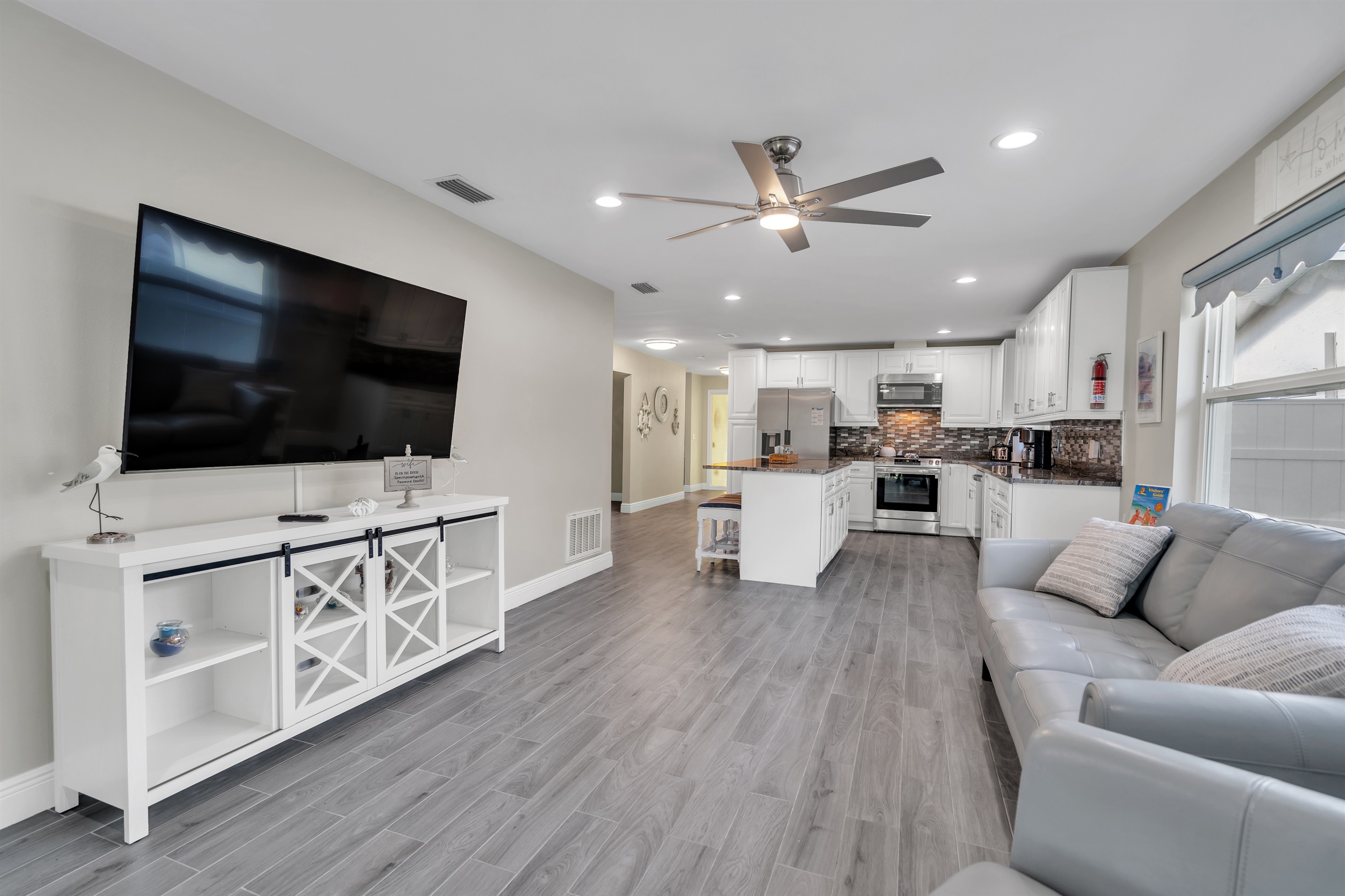- Amenities include a well-equipped kitchen, 2 flat-screen Smart TVs with cable access, free WiFi, washer and dryer, fenced-in backyard, provided beach towels, gas grill, covered parking for 1 vehicle, driveway parking for 2 vehicles.