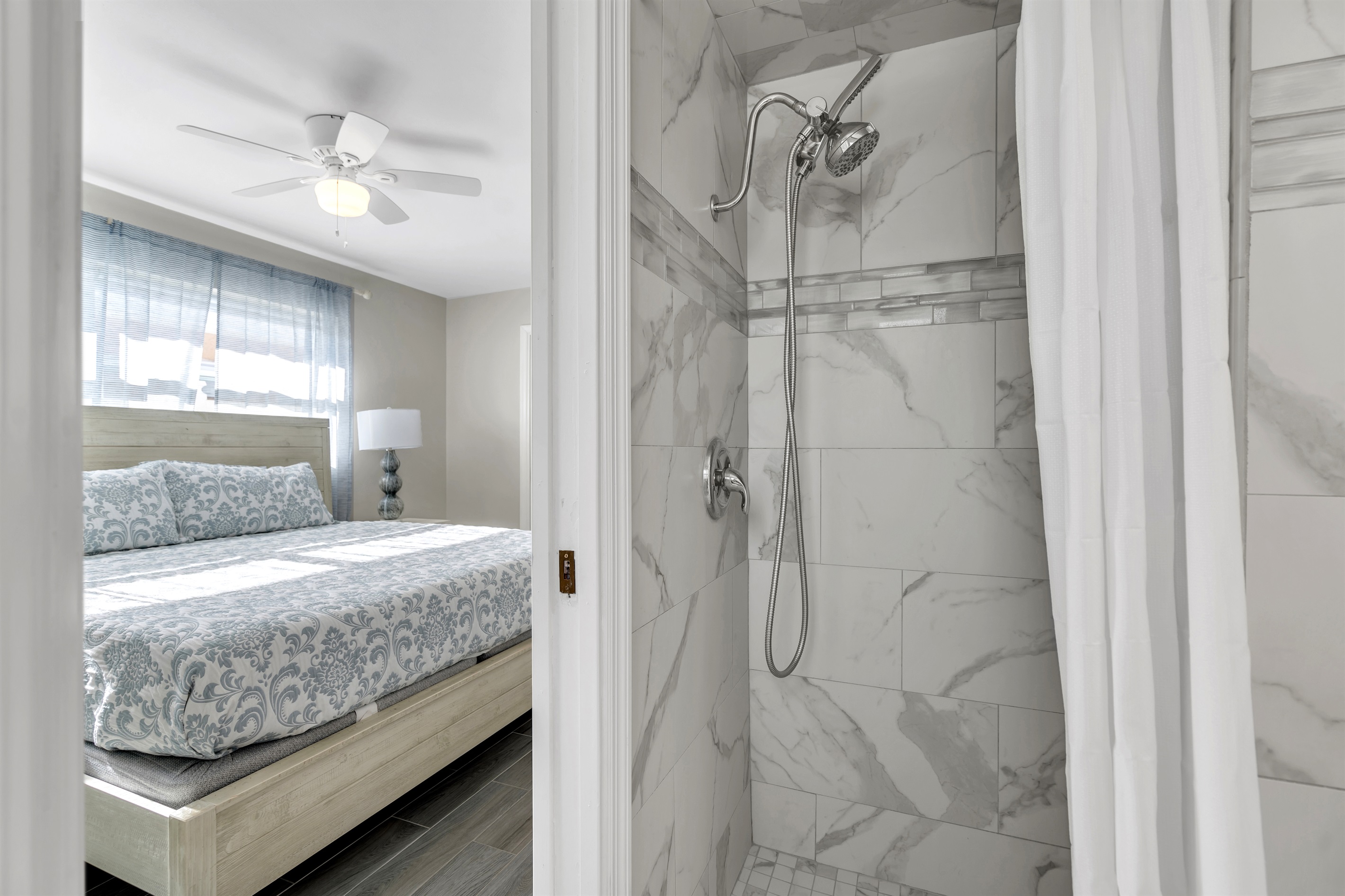 Master Bedroom: King Bed with private bath and walk-in closet | Bedroom 2: Queen Bed | Bedroom 3: Full Bed. There is also a full-size sofa bed in the rear TV room.