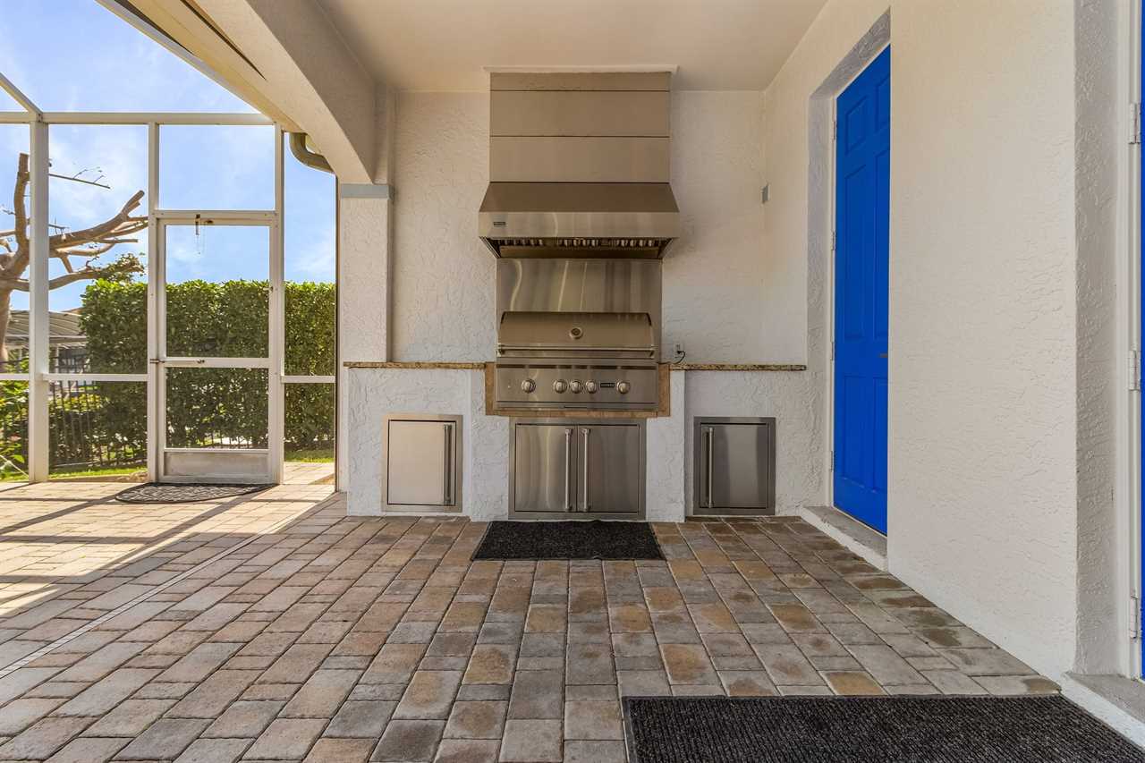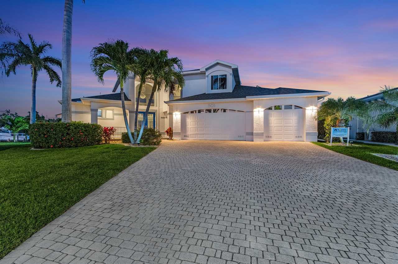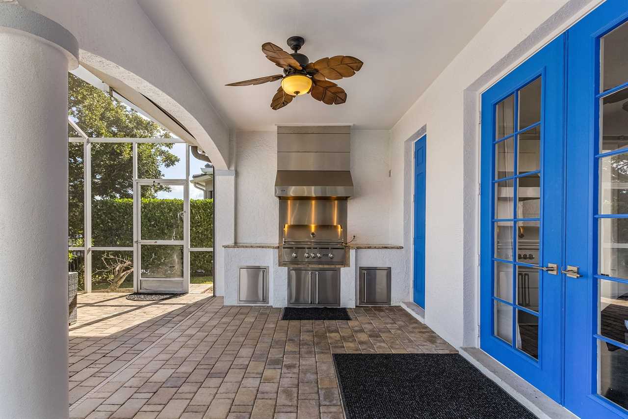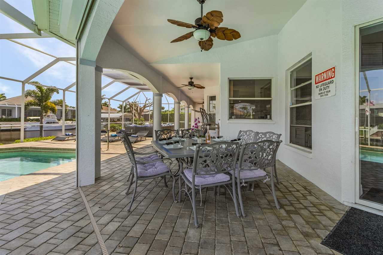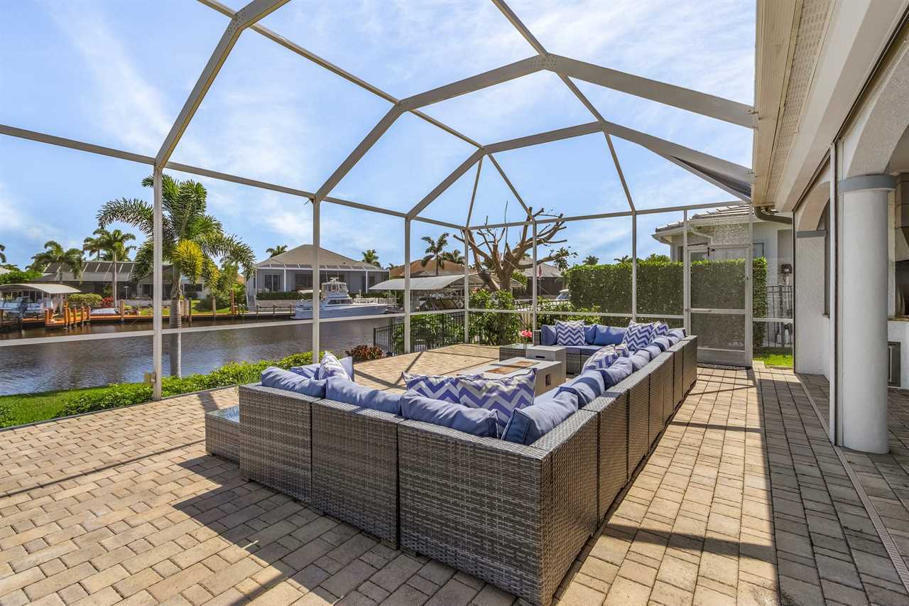While the inside of this home is beyond luxurious, you will find the true highlight of Villa Whispering Palms when you walk outside. Outside you will find your own private paradise with a large screened in lanai, outdoor kitchen and custom pool, with a brand NEW hot tub. This pool is perfect for soaking up the Florida sun, splashing around or playing pool games. Plenty of outdoor furniture gives you and your guests plenty of options for where to relax and take in the Florida fresh air. Spend your evenings relaxing on the large outdoor couch and electric fireplace. Make yourself a drink and enjoy the views of the canal. Villa Whispering Palms sits on a large lot and has a spacious backyard. Here you have room to play a game of cornhole or walk down to the dock where you can fish or search for Southwest Florida Wildlife.