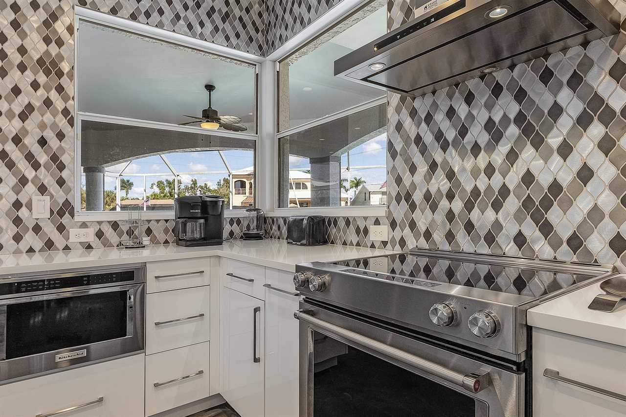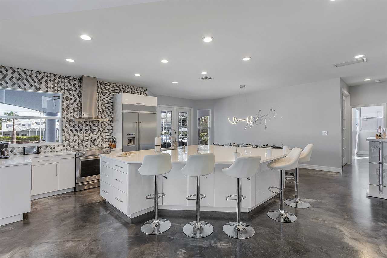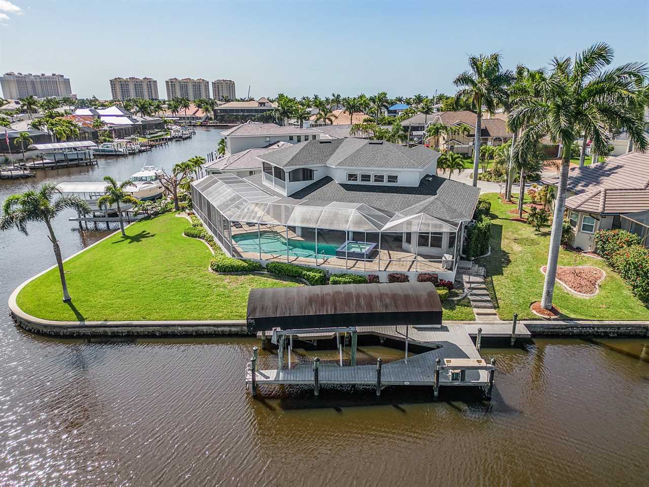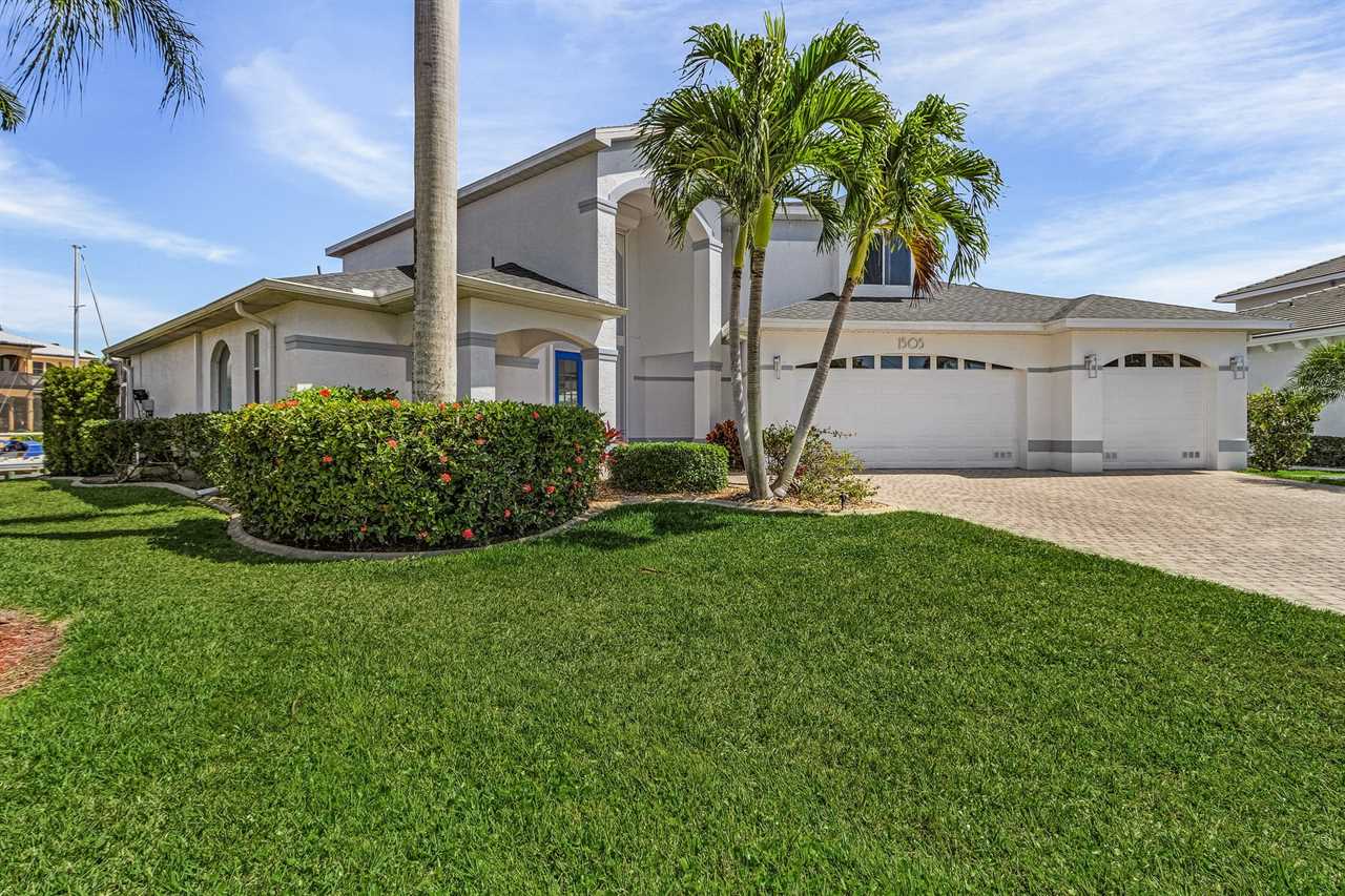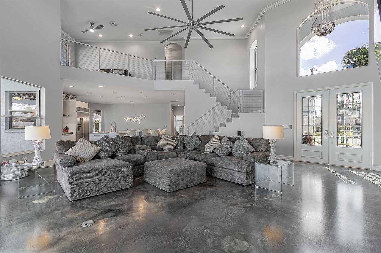 While the inside of this home is beyond luxurious, you will find the true highlight of Villa Whispering Palms when you walk outside. Outside you will find your own private paradise with a large screened in lanai, outdoor kitchen and custom pool, with a brand NEW hot tub. This pool is perfect for soaking up the Florida sun, splashing around or playing pool games. Plenty of outdoor furniture gives you and your guests plenty of options for where to relax and take in the Florida fresh air. Spend your evenings relaxing on the large outdoor couch and electric fireplace. Make yourself a drink and enjoy the views of the canal. Villa Whispering Palms sits on a large lot and has a spacious backyard. Here you have room to play a game of cornhole or walk down to the dock where you can fish or search for Southwest Florida Wildlife.