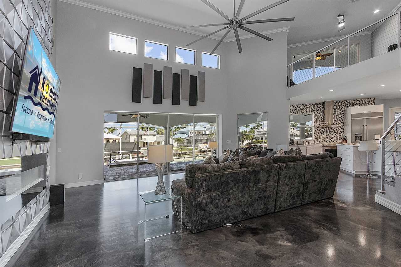 You and your loved ones will be immersed in paradise from the second you open the stunning front entry. You will walk into a luxury living room with high vaulted ceilings, modern decor and touches. A cozy and large couch gives you and your guests plenty of space to sit, relax, and watch your favorite movie or TV show on the large Smart TV. Enjoy an evening in this living room relaxing by the electric fireplace, cozied up on the couch.