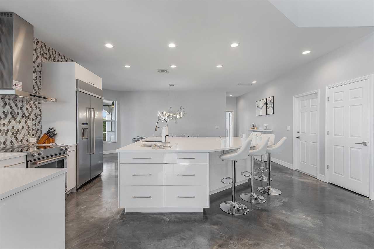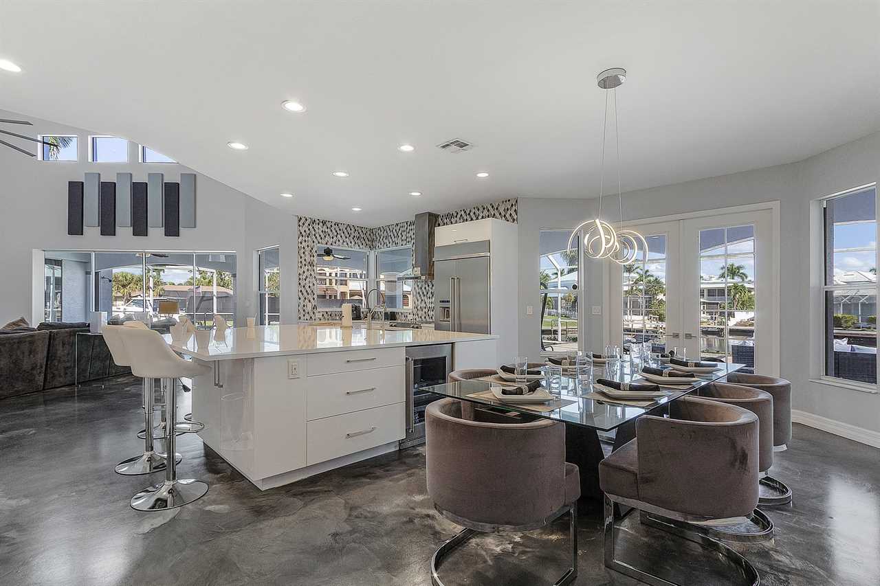 You will feel like a professional chef cooking meals in this high-end kitchen. You and your guests will find all you need to cook including kitchen essentials, high-end stainless steel appliances, a wine fridge and a large kitchen island. A large dining room table gives you and your guests space to enjoy these delicious meals and each other s company.