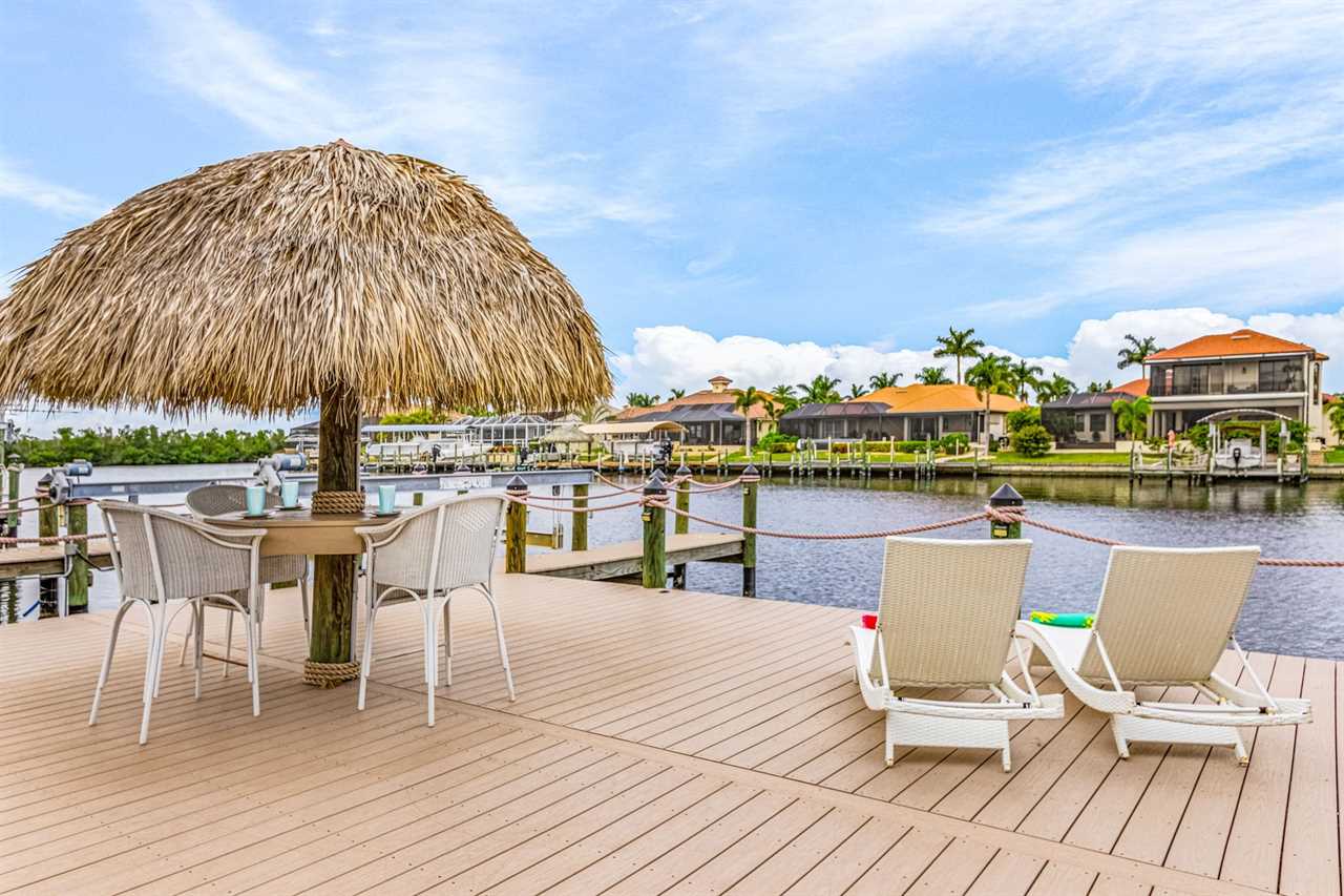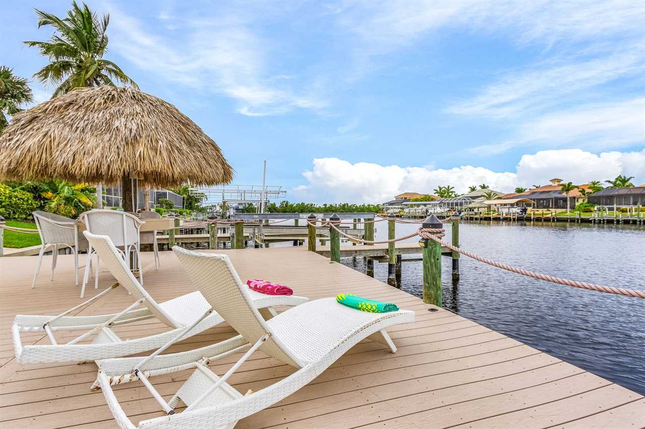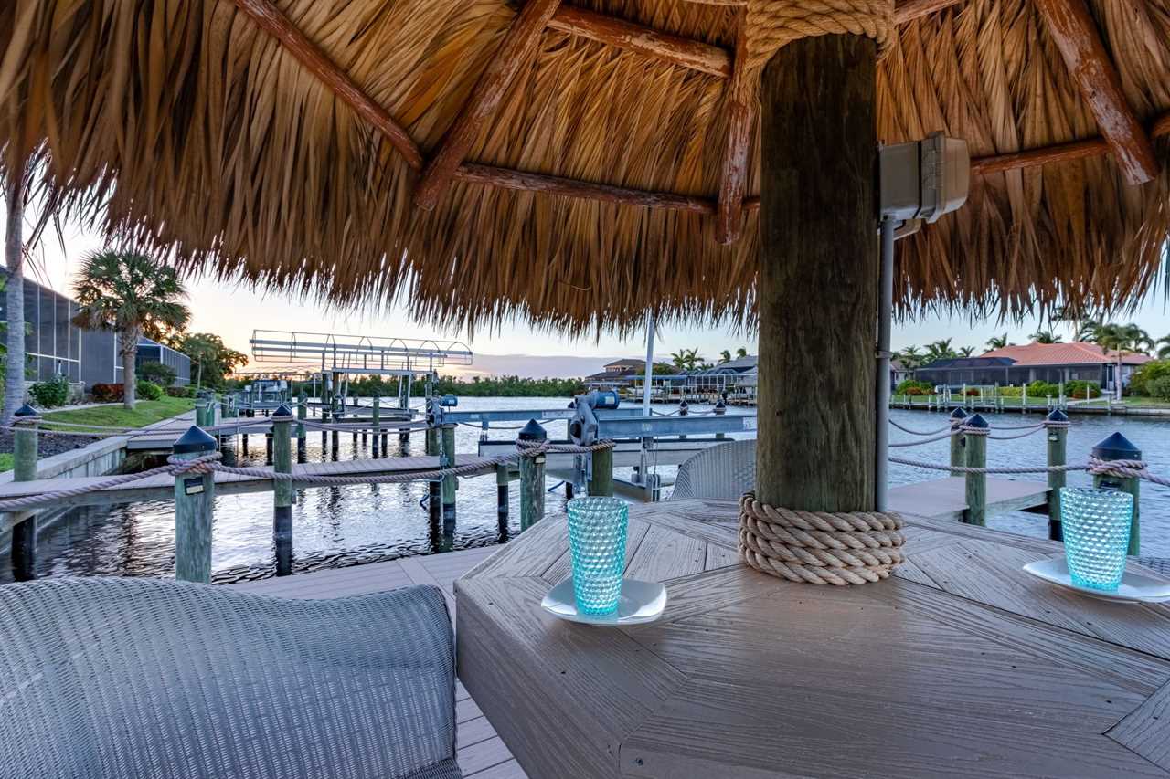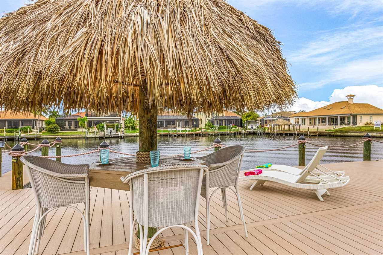 Gulf Access & Dock with Tiki Hut: Launch a boating adventure or fish from your private dock with direct Gulf access, complete with a charming tiki hut for shaded relaxation by the water.