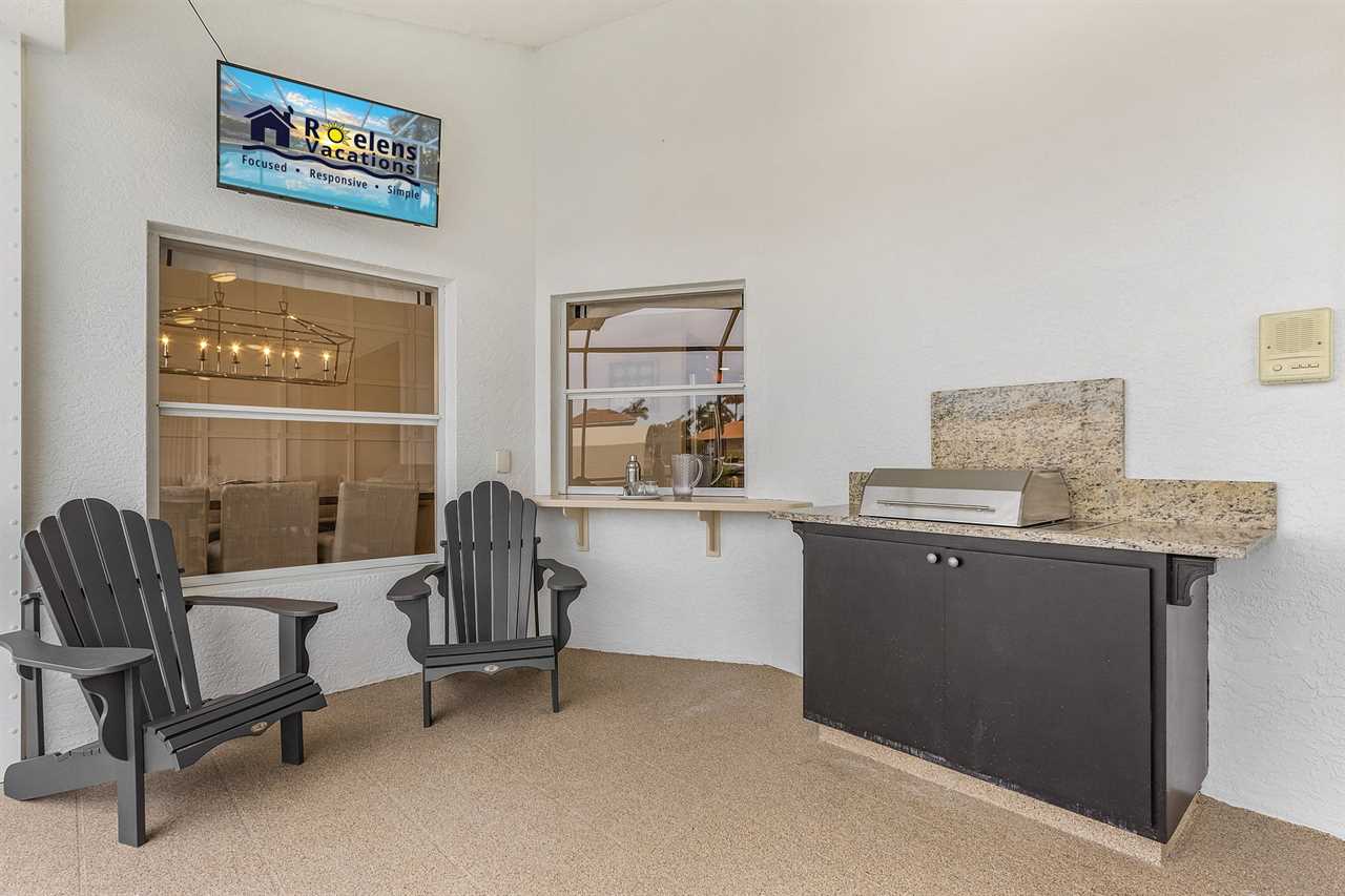 Outdoor Kitchen & Grill: Cook up a feast in the outdoor kitchen with a grill, perfect for BBQs and dining alfresco with a view of the pool and beyond.