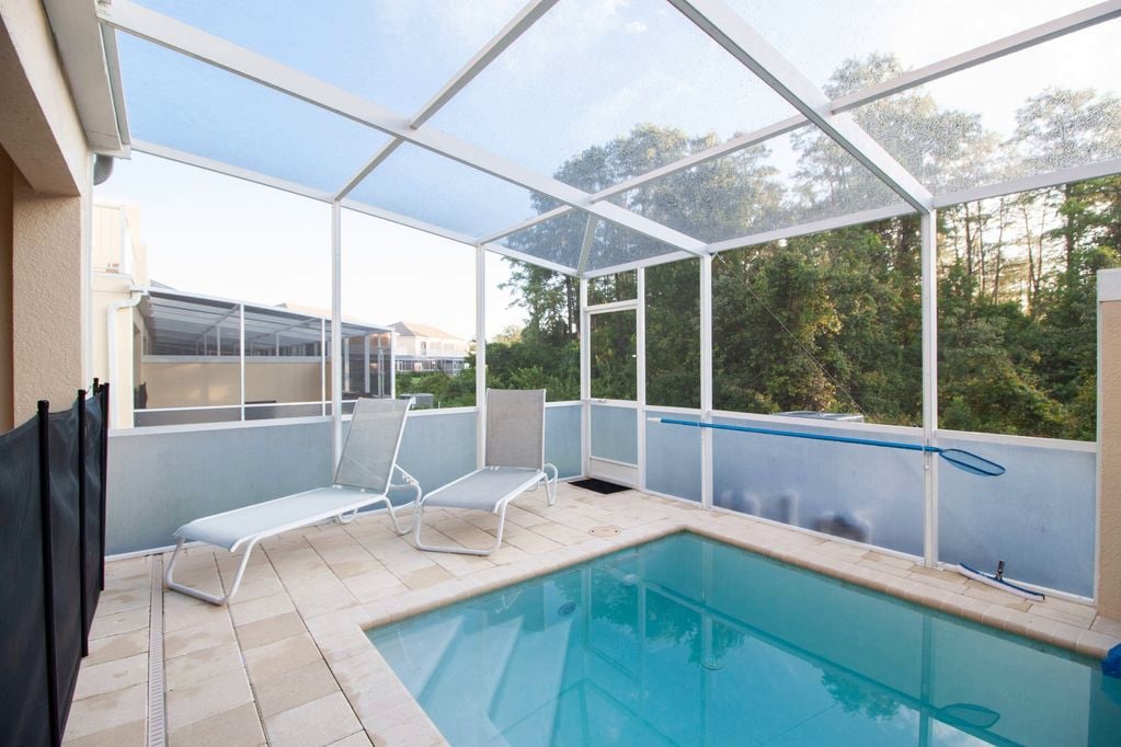 • Private screened pool with optional heat