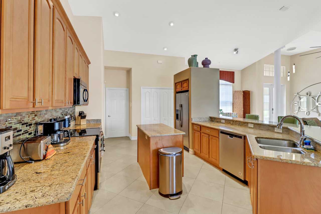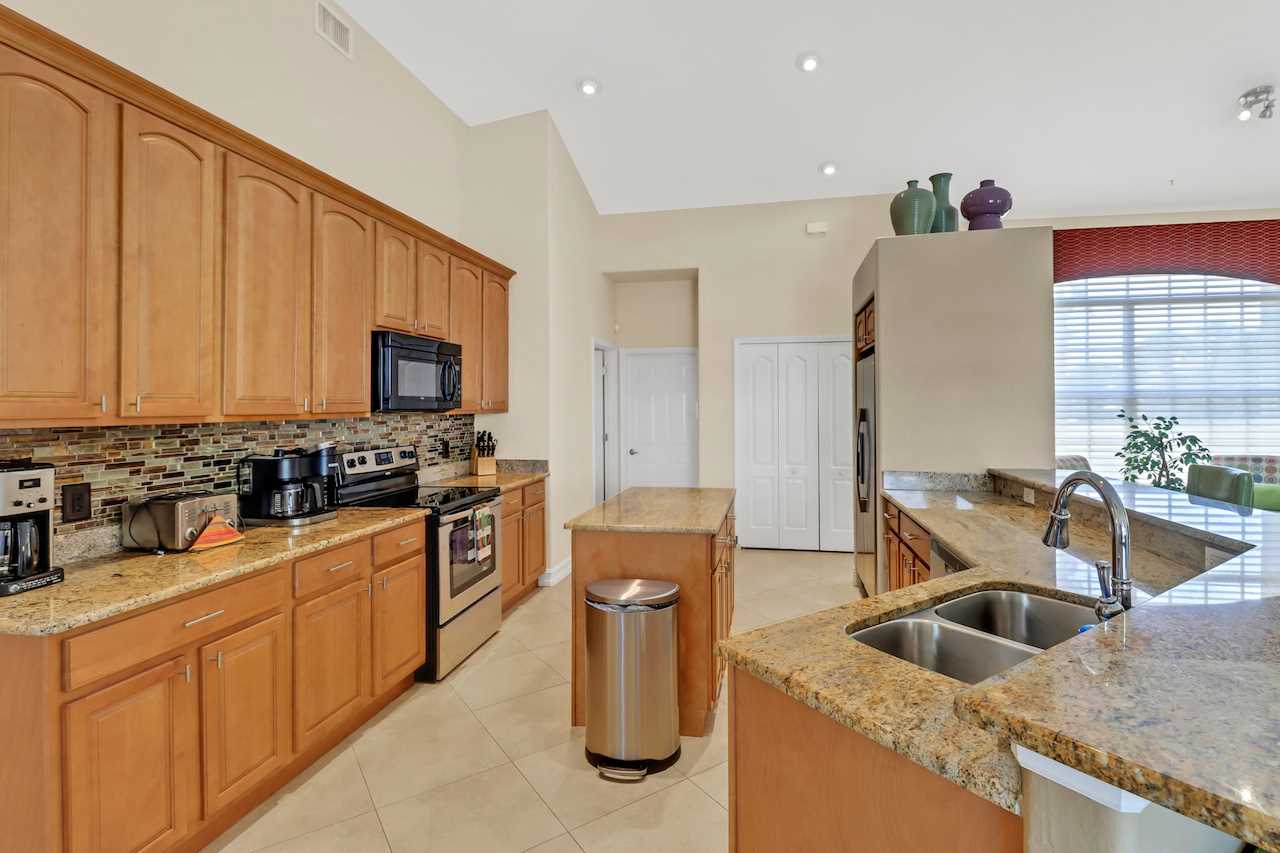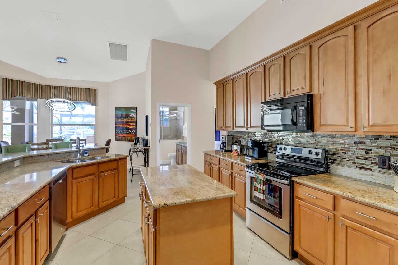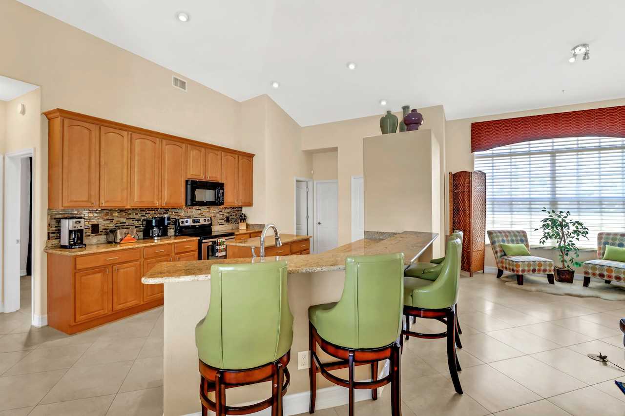 The large Dine-In Kitchen offers upgraded countertops and all appliances needed for perfect entertainment and even the professional cooks. A Keurig and Drip style coffee maker is also supplied along with Air Fryer and other small appliances. Guests may enjoy seating at the spacious 4 seat countertop or adjacent dining area fit for up to 6. BOSE portable speaker with mobile connectivity is also supplied for kitchen and living room area and can be moved throughout the home.