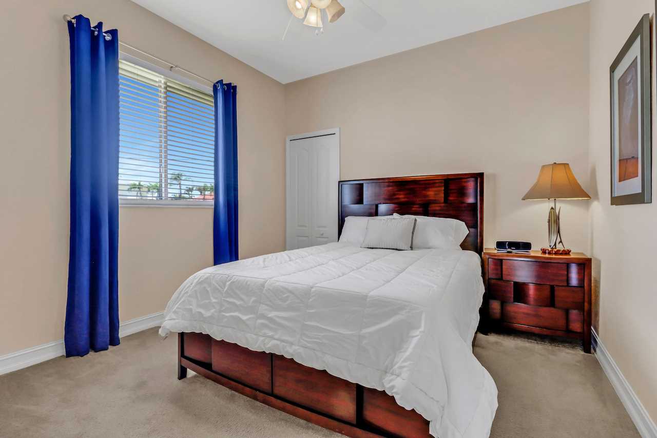 Guest bedrooms are both fitted with queen sized beds and wall mounted ROKU TV's and each have a spacious walk in closet. The southern guest bedroom has direct access to the pool area. Both guest bedrooms share a large bathroom with pool area access. Dual sinks allow for multiple users and the large shower is situated for easy access from the patio.