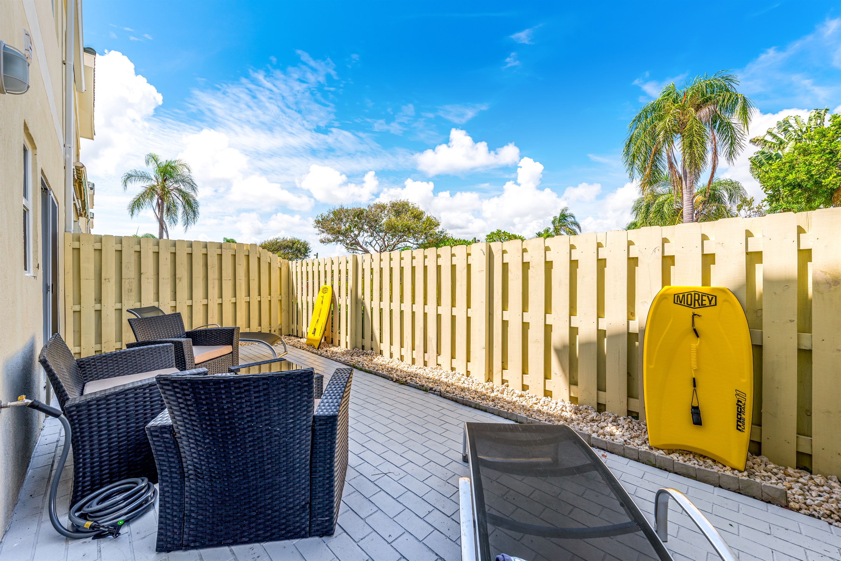 The community amenities are fantastic, with a pool and cabana area with a bar, as well as tennis and racquetball courts. We provide tennis rackets & balls, beach towels, boogie boards, and beach chairs for our guests. The condo is just a quick 4–6-minute walk to Carlin Park, which has plenty of amenities, including bocce ball, an exercise running course, fishing, restroom facilities, shelters with grills, and a playground for kids.