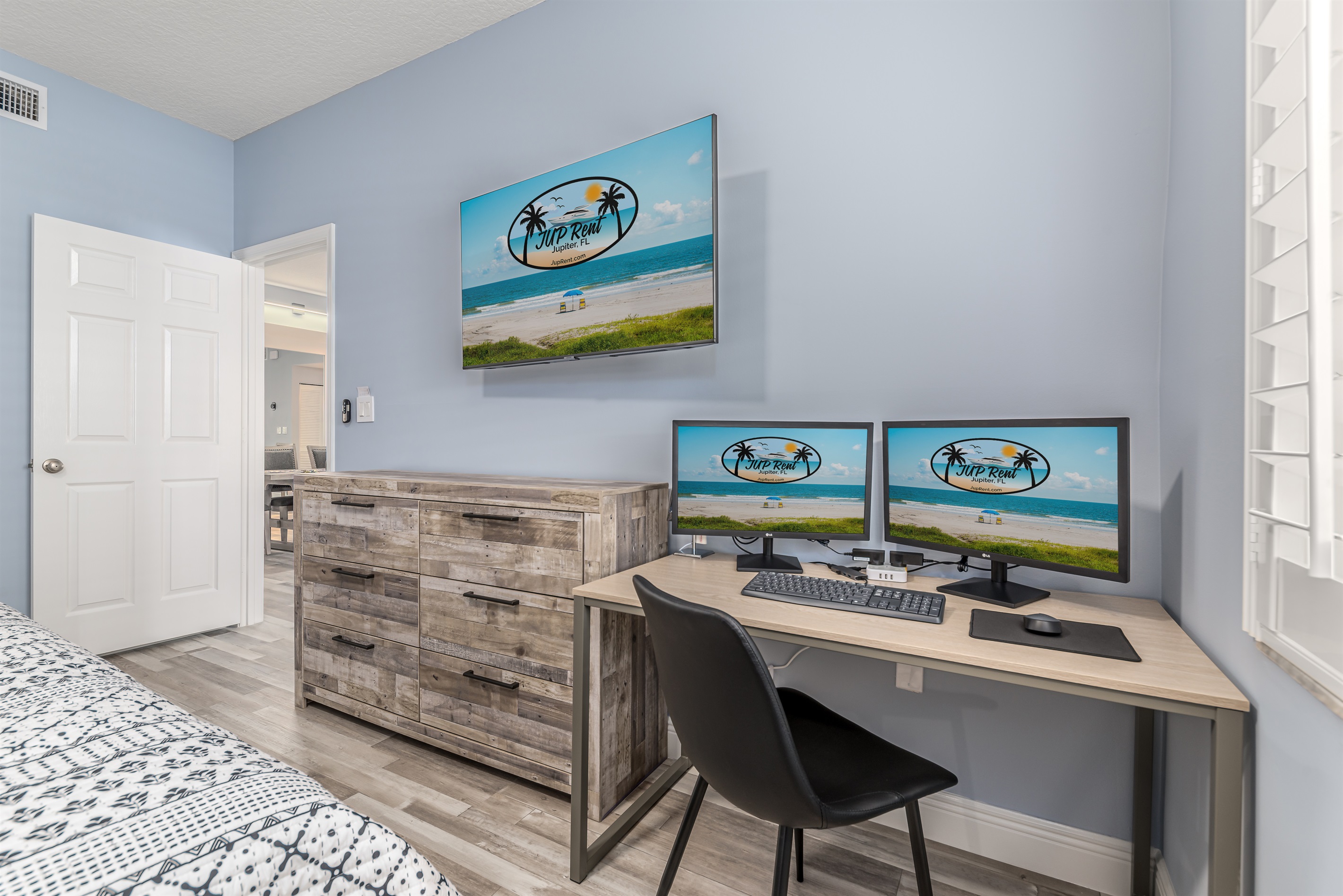 If you need to work from home during your stay, you're covered with our full function workstation setup, including dual monitors, a USB-C hub, keyboard, mouse, and surge protector. High-speed internet and a robust cable package are included in your rental.