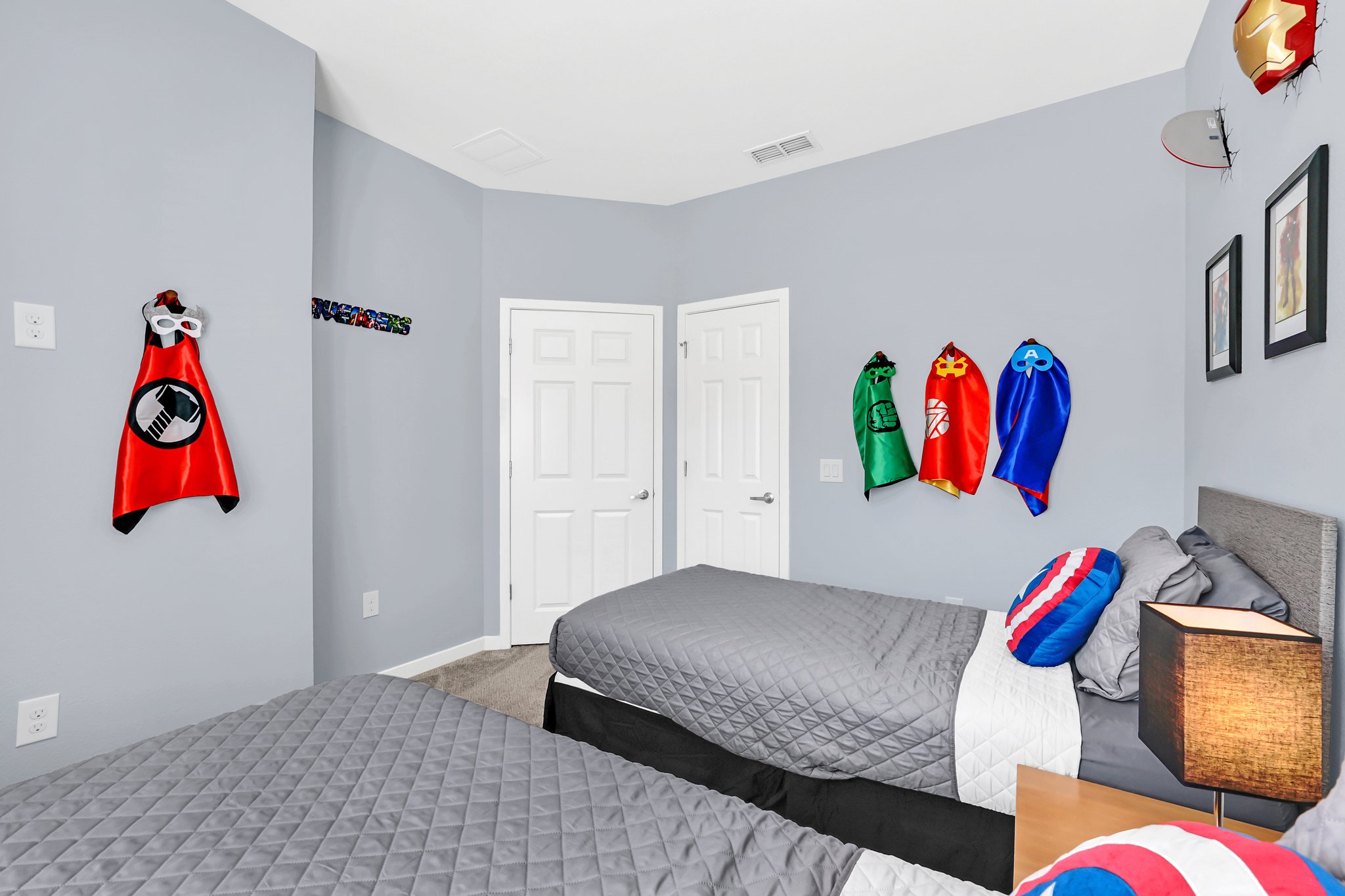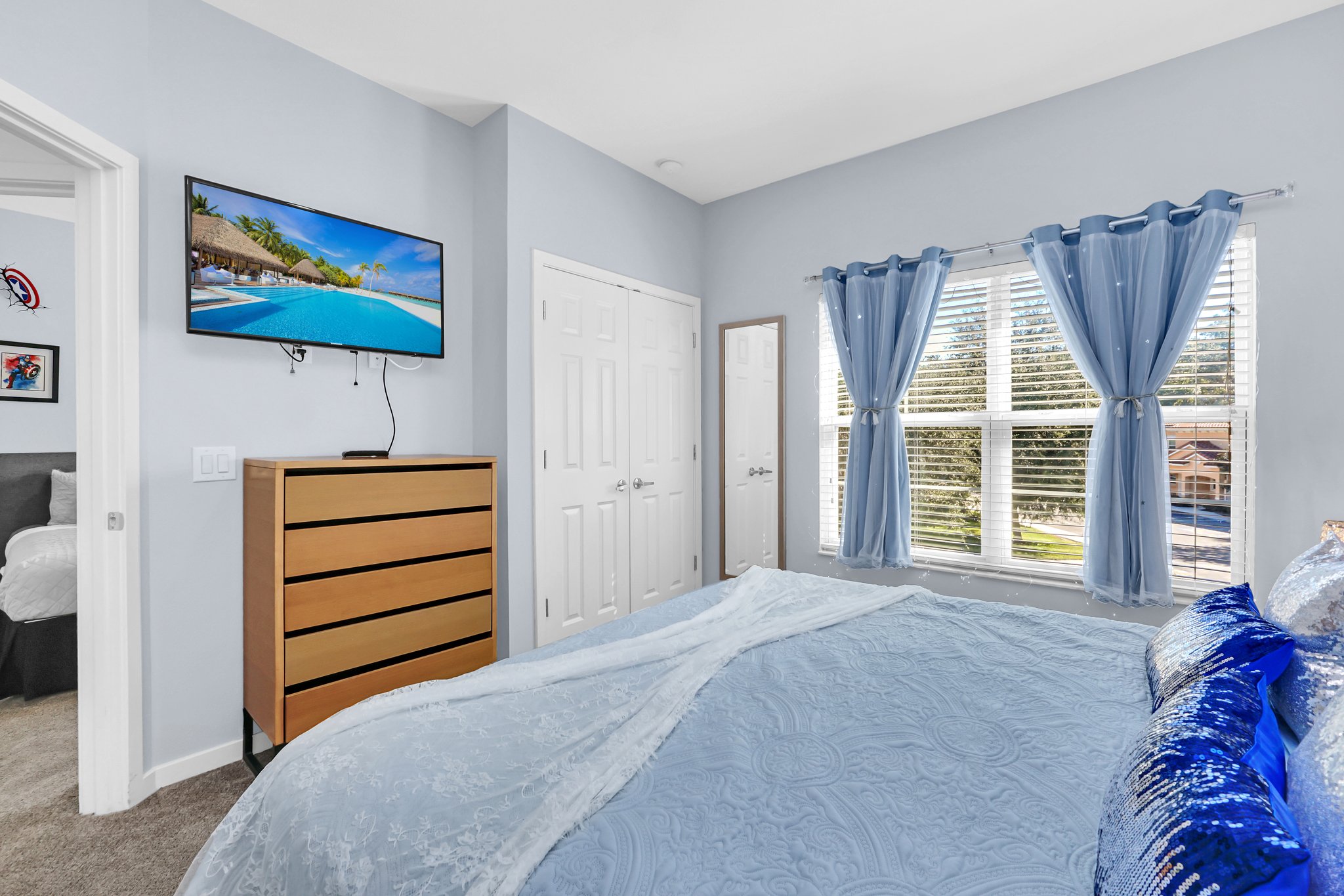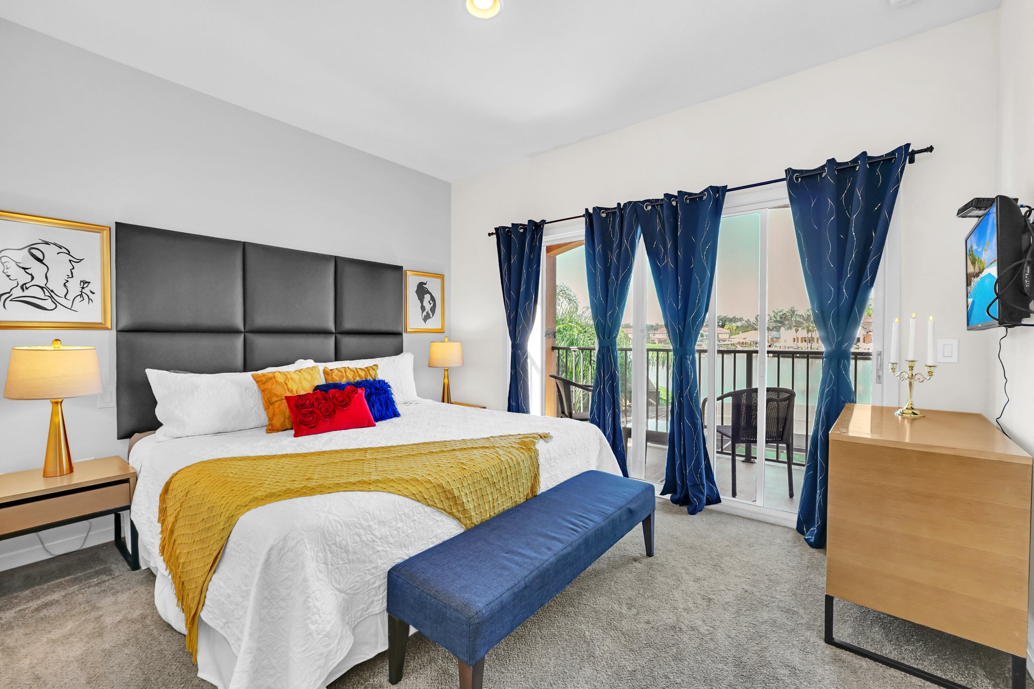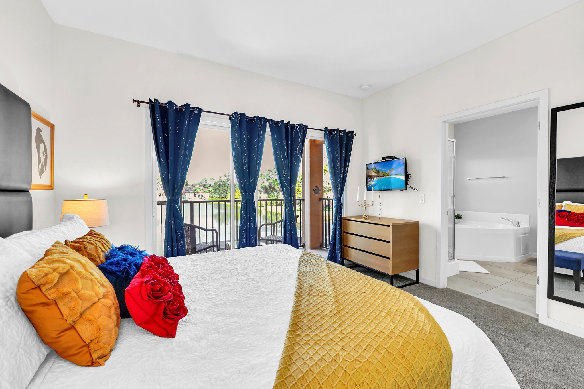 This townhome offers three spacious bedrooms, each thoughtfully designed to ensure a restful night's sleep. The master bedroom boasts a luxurious king-size bed, an ensuite bath and its own private waterfront balcony where you can savor your morning coffee watching the wildlife stroll by. The two additional themed bedrooms are equally comfortable, one with a king-size bed and the other with twin beds, making this home perfect for families or groups of friends.