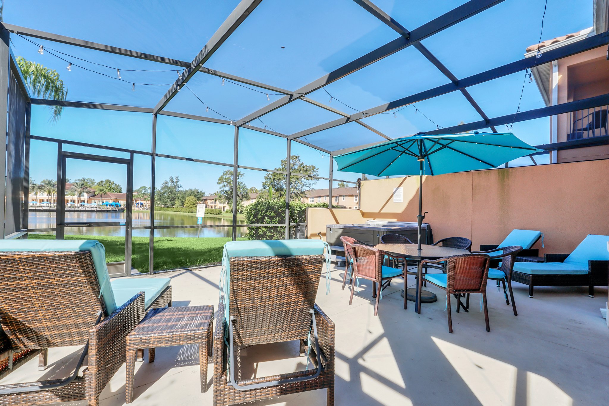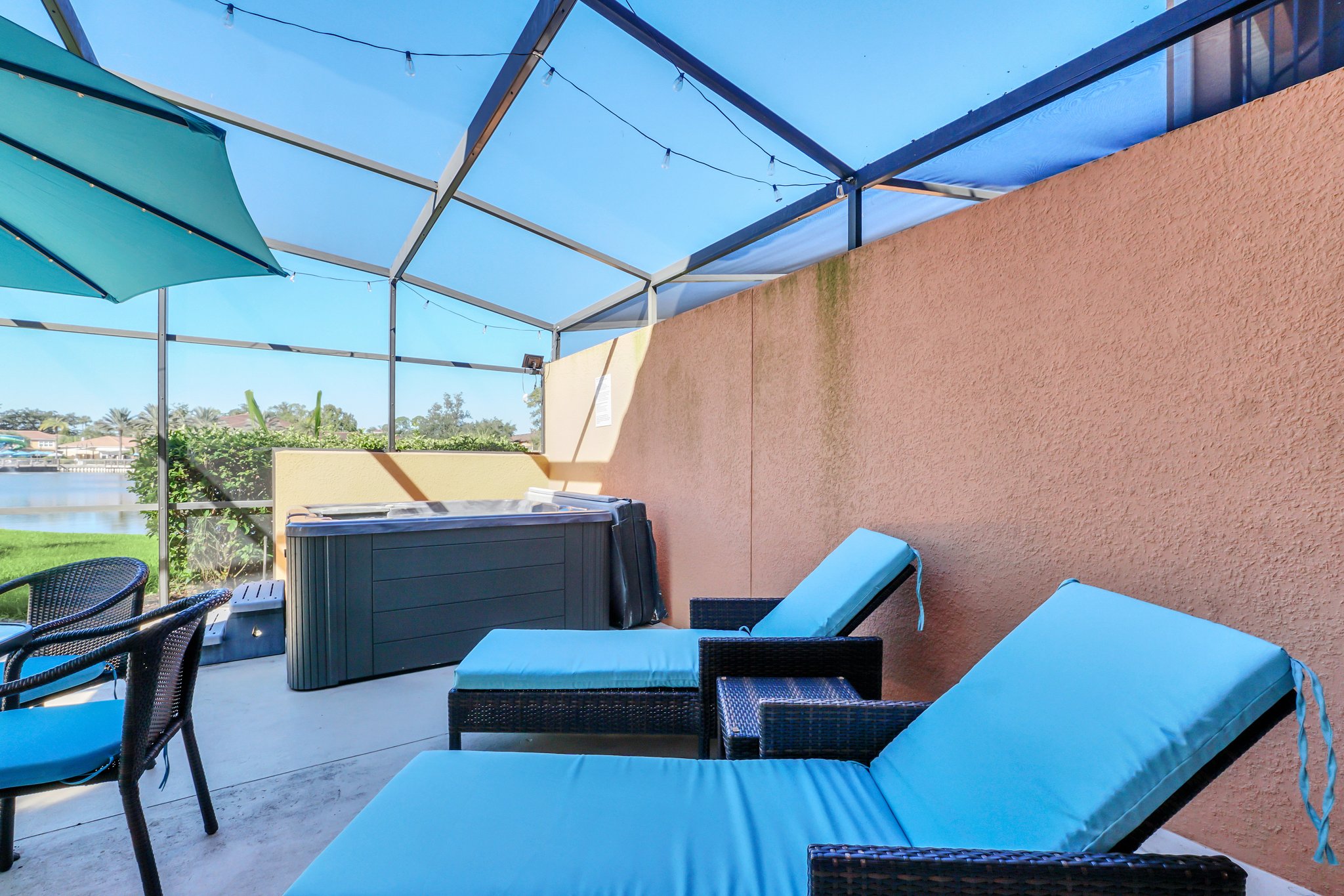 Step outside onto your private lanai, a tranquil oasis where you can bask in the Florida sun on one of the comfy lounge chairs, enjoy al fresco dining or have a relaxing soak in the hot tub.
