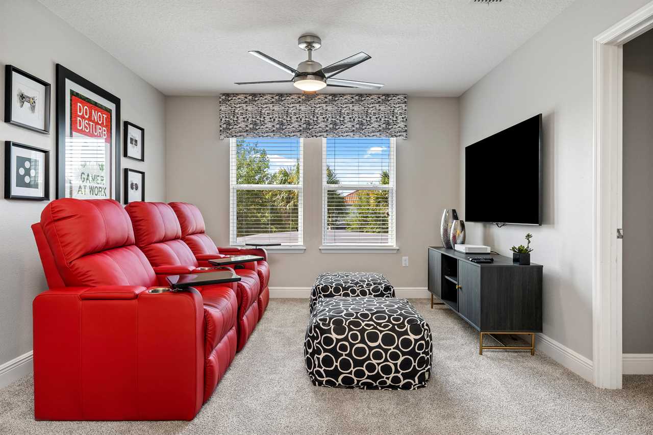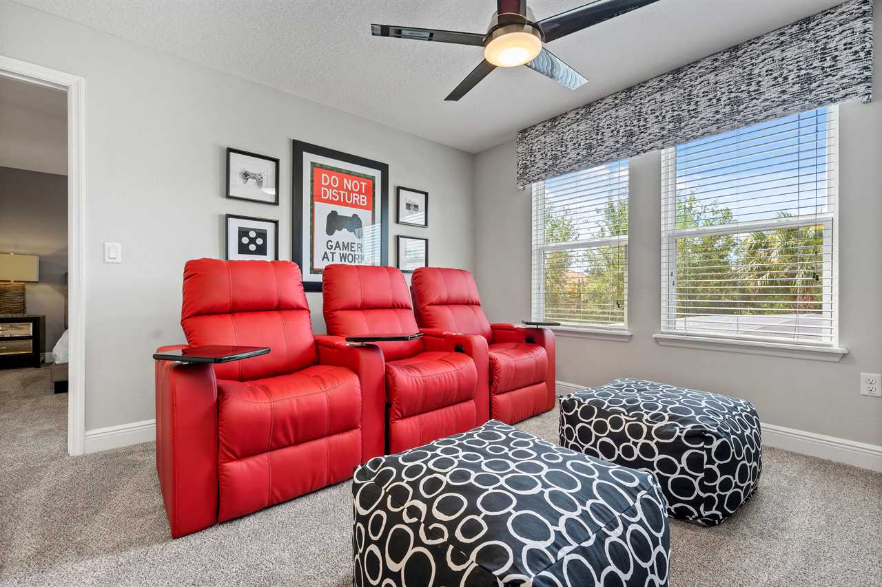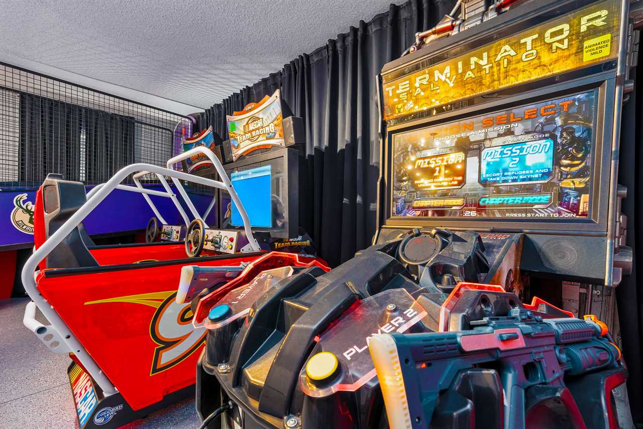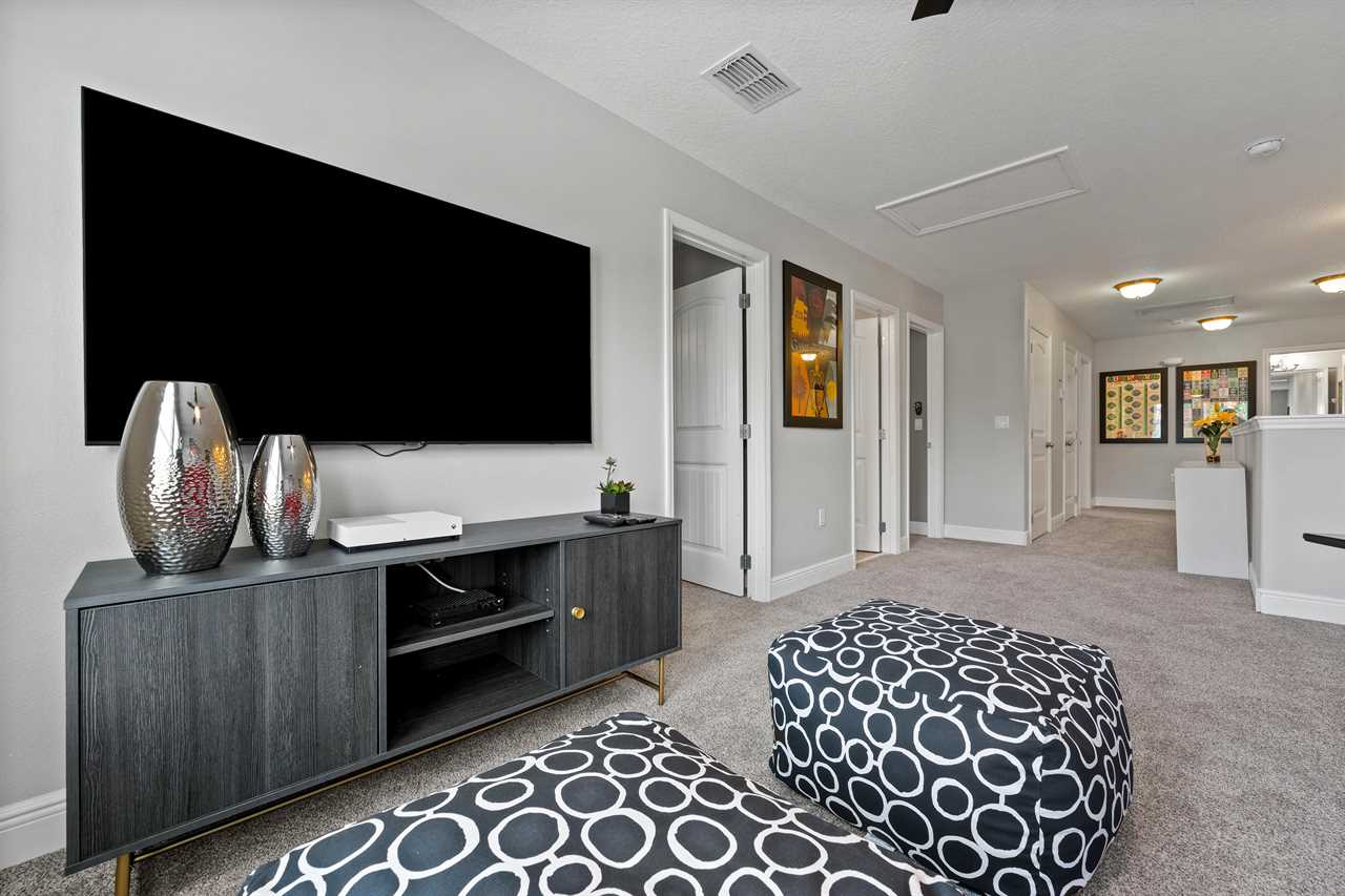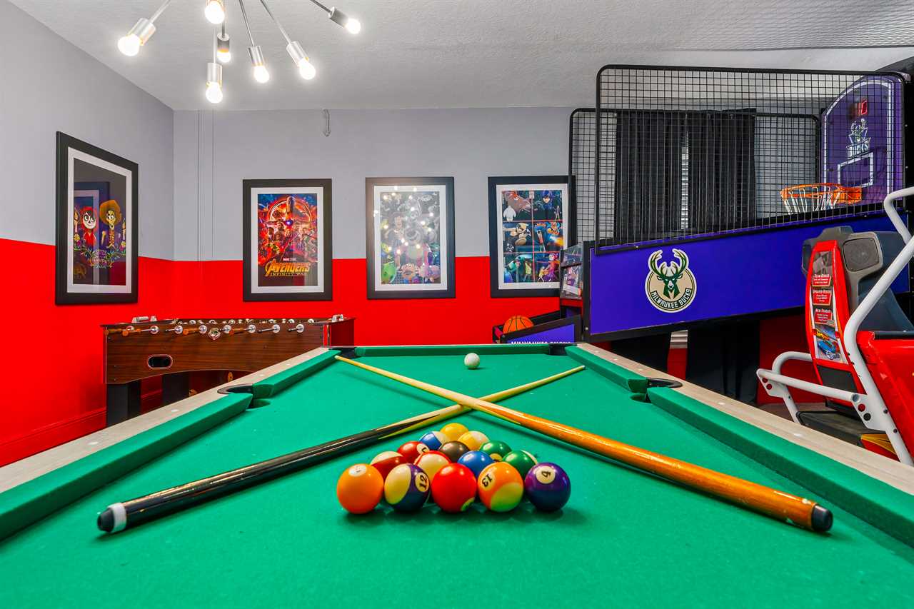 This home presents many exciting options for entertainment. There are two game rooms, one in the upstairs loft with an Xbox, two controllers, a large screen TV, and 3 large reclining chairs. This area also is perfect for watching movies in oversized recliners. The second game room on the lower level contains a pool table and a foosball table to keep the kids or adults occupied in the evenings.